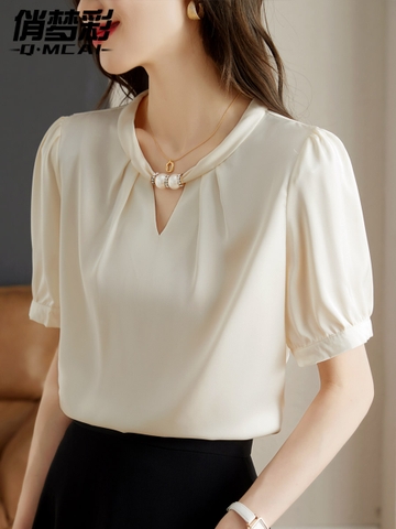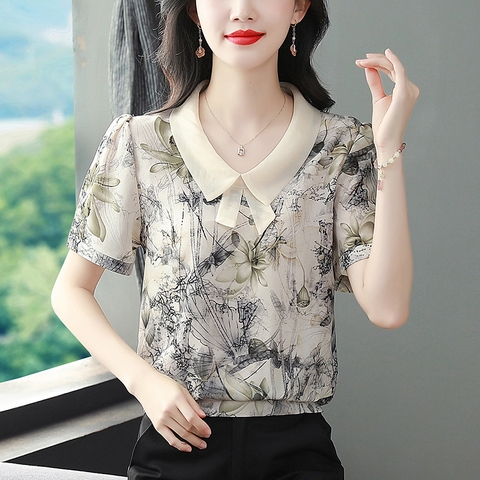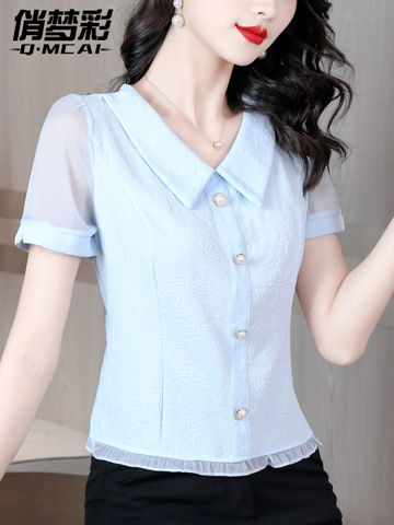 Mã L713: Áo sơ mi voan tay ngắn nữ mùa hè mới nhẹ nhàng sang trọng cao cấp