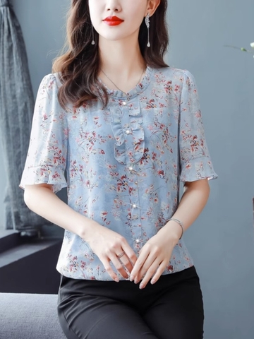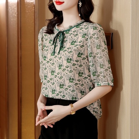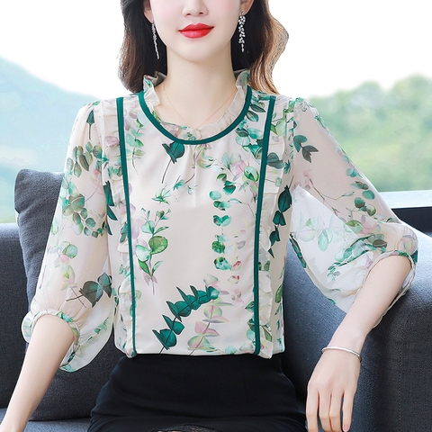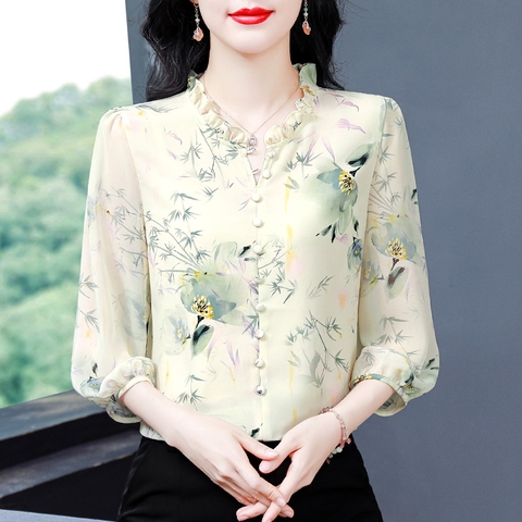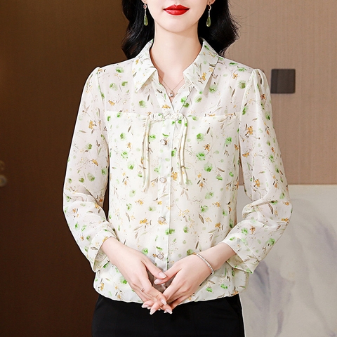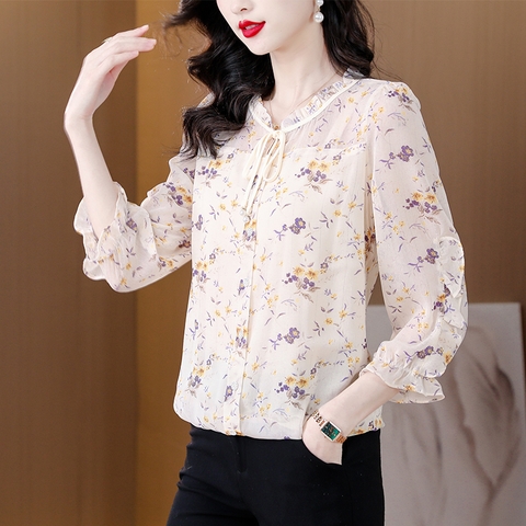Mã L838: Áo sơ mi trung niên voan hoa cổ điển dành cho nữ cao cấp xuân hè