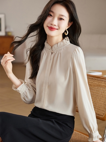 Mã L831: Áo sơ mi voan trắng nữ cao cấp tay lỡ thời trang xuân thu cho mẹ