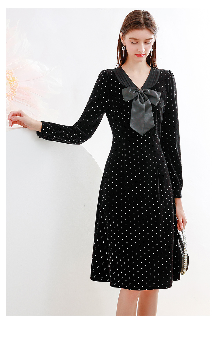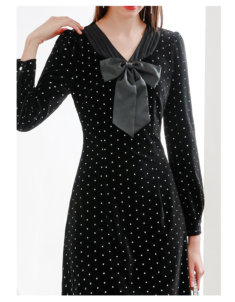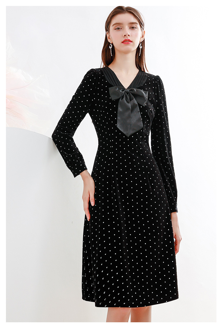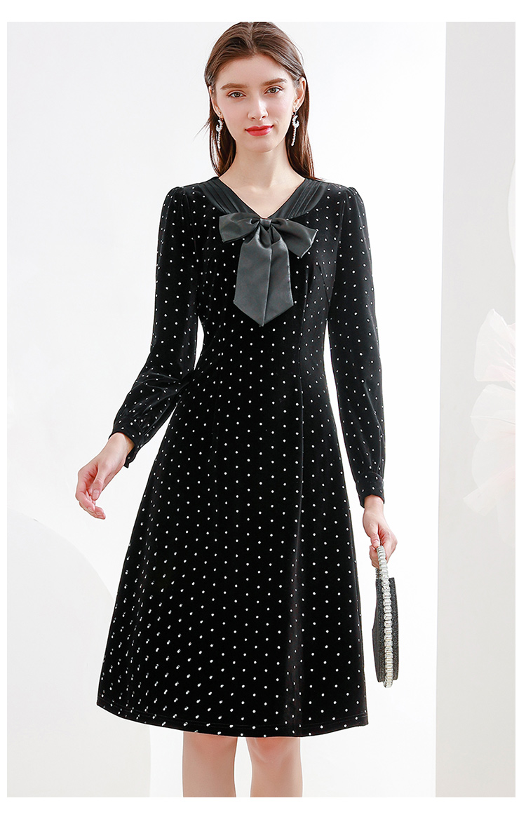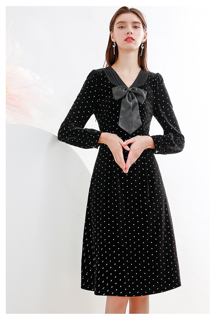 Mã C623: đầm cao cấp chấm bi cổ nơ Pc âu