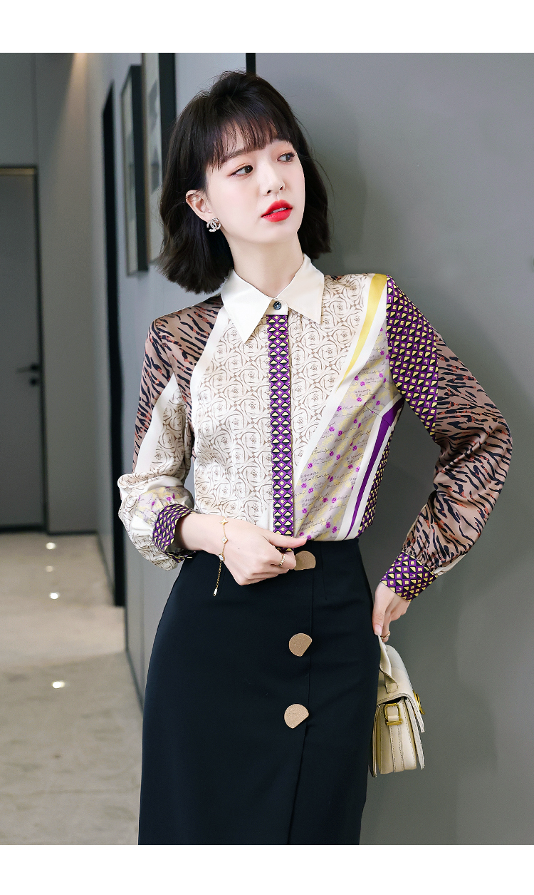 Mã C846: Áo sơ mi lụa in nữ mùa xuân mới sang trọng