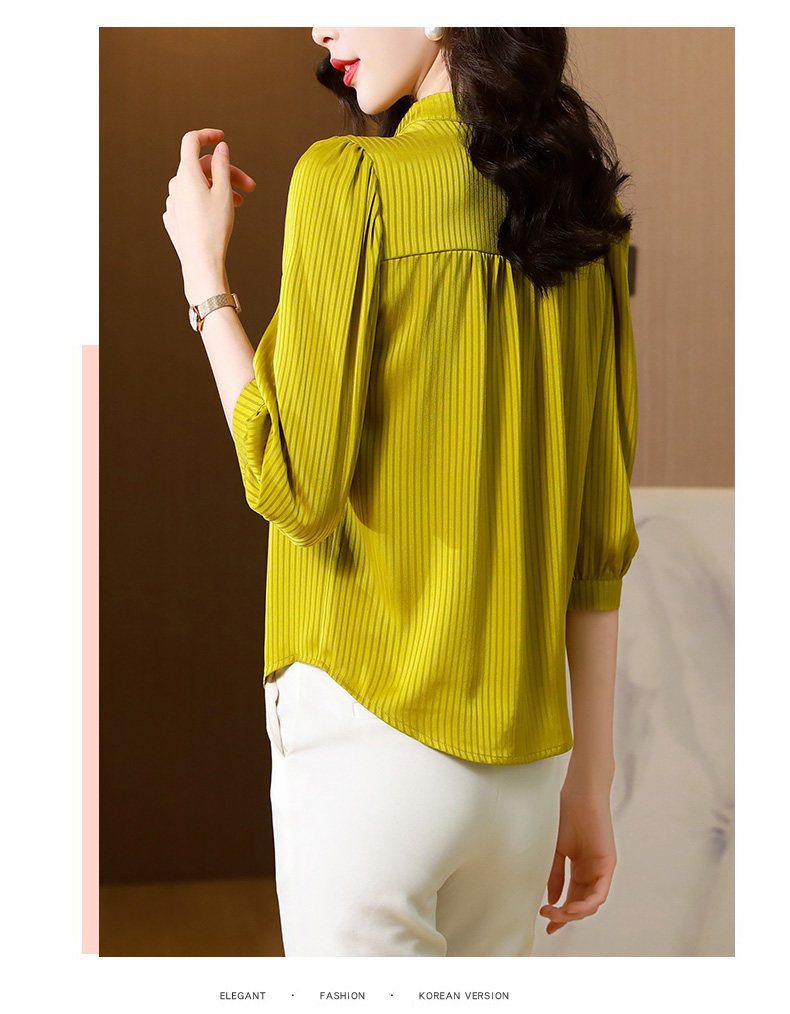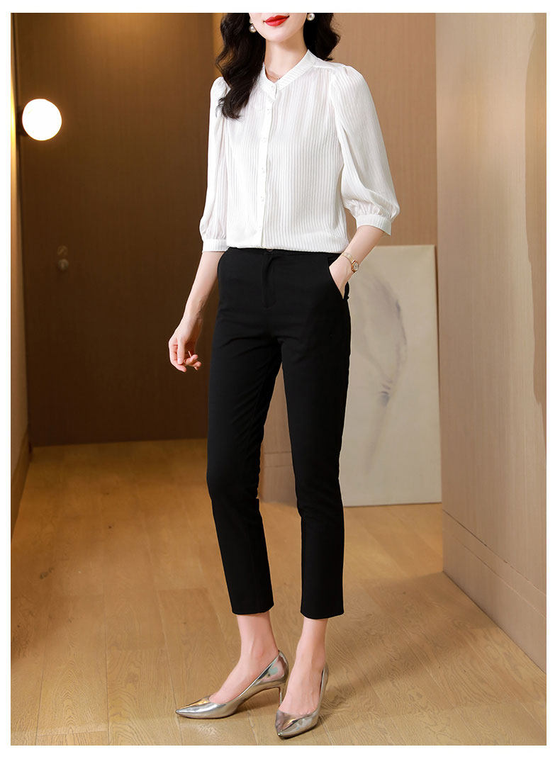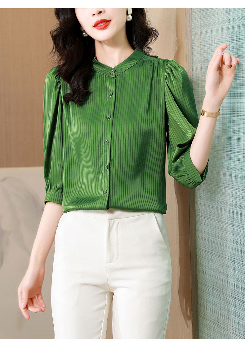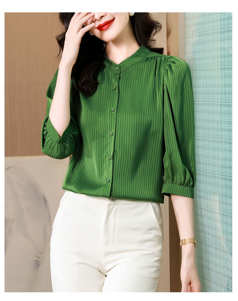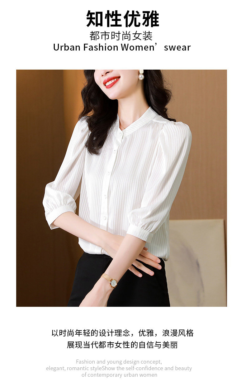 Thiết kế cổ truyền thống và kiểu dáng nhẹ nhàng tạo nên vẻ đẹp thanh thoát và duyên dáng. Chất liệu polyeste mềm mịn và thoáng khí giúp người mặc luôn cảm thấy thoải mái và tự tin.Chiếc áo sơ mi này phù hợp cho các dịp công việc, hoặc đi dạo phố.