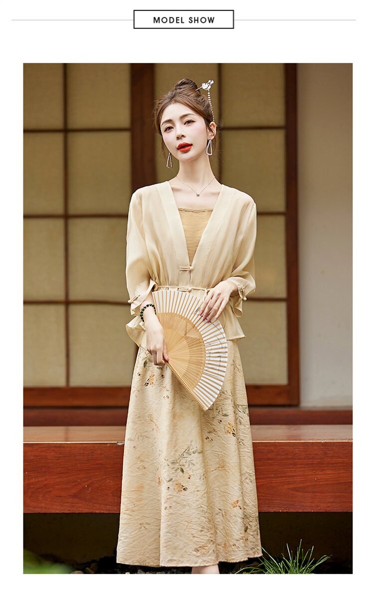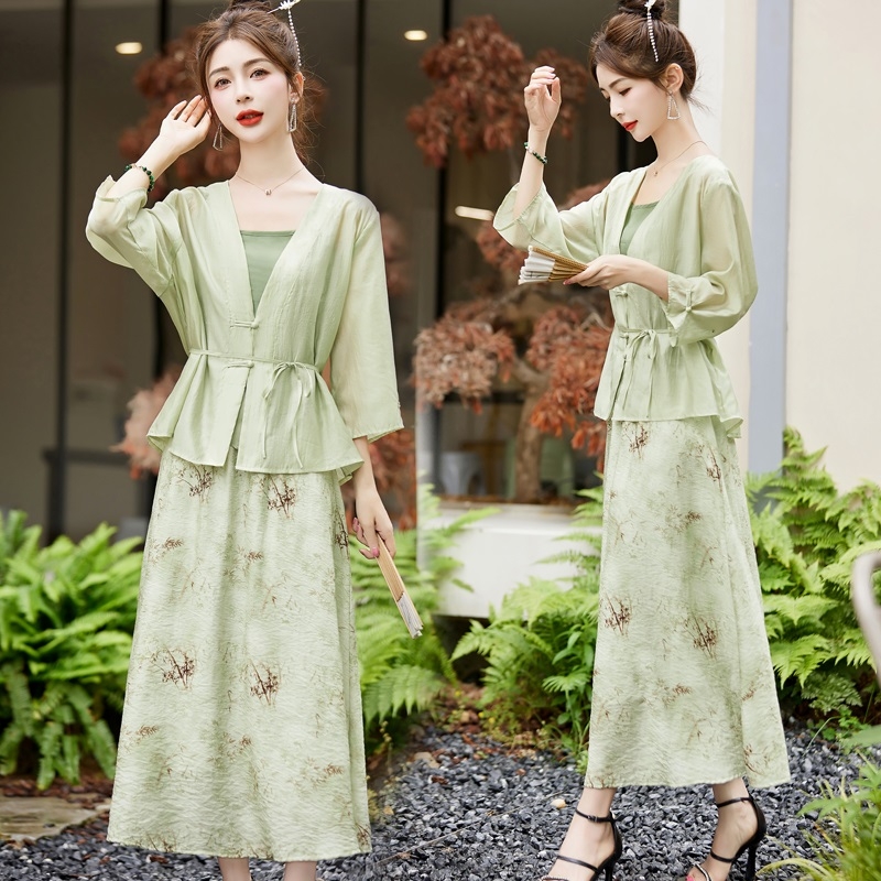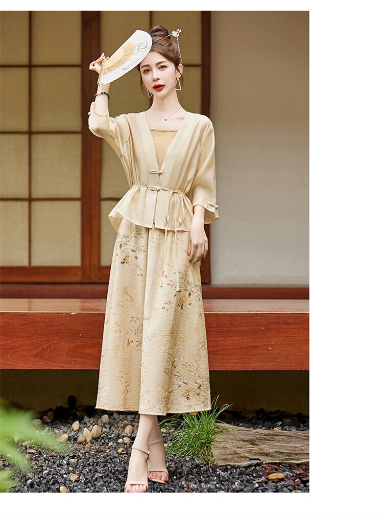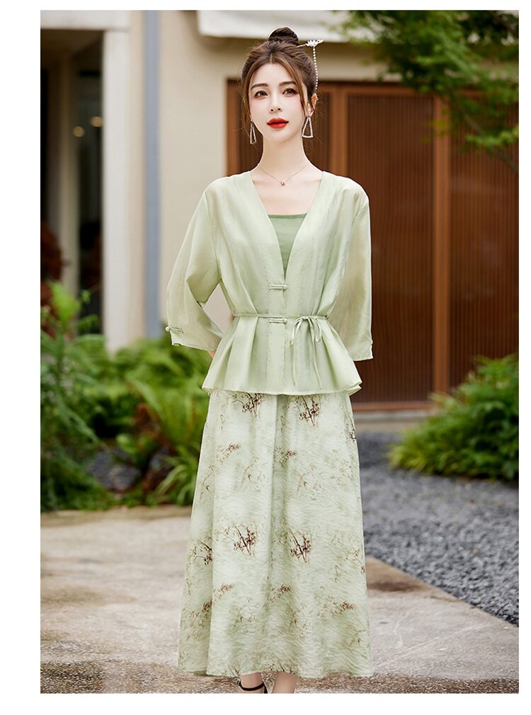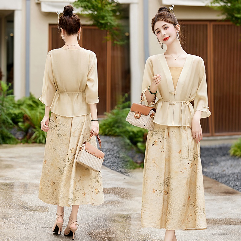 Mã G118: đầm phong cách phương Tây váy in hoa Bộ ba món