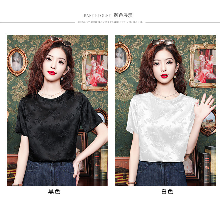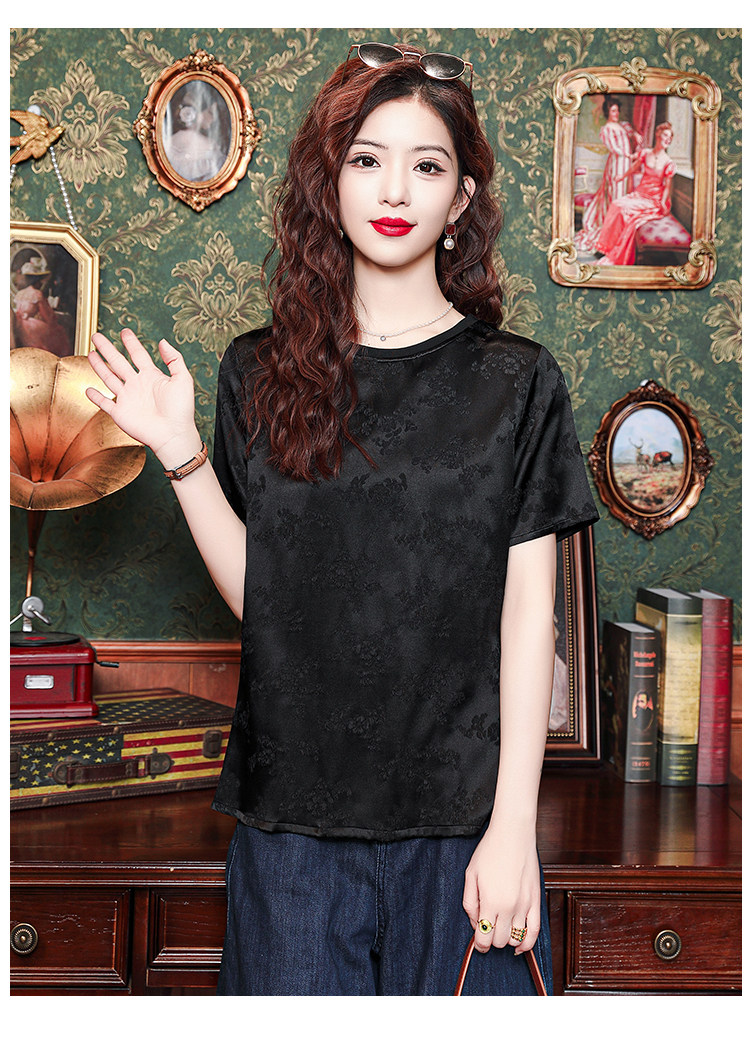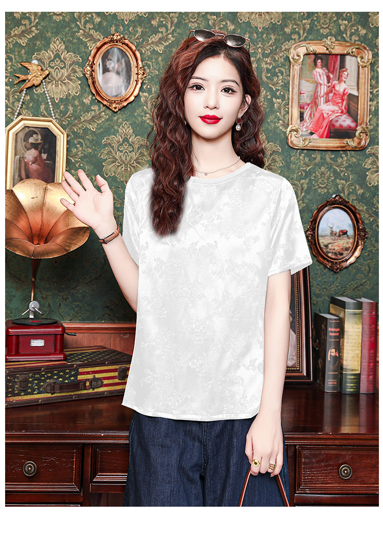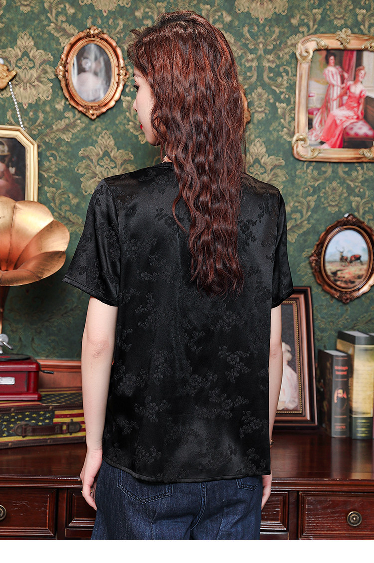 Mô tả 1:Áo lụa cổ tròn jacquard phong cách Trung Hoa sang trọng, thiết kế tinh tế dành cho các bà mẹ. Chất liệu lụa cao cấp mềm mại, thoáng mát. Kiểu dáng thanh lịch, tôn lên vẻ đẹp quý phái và trang nhã.