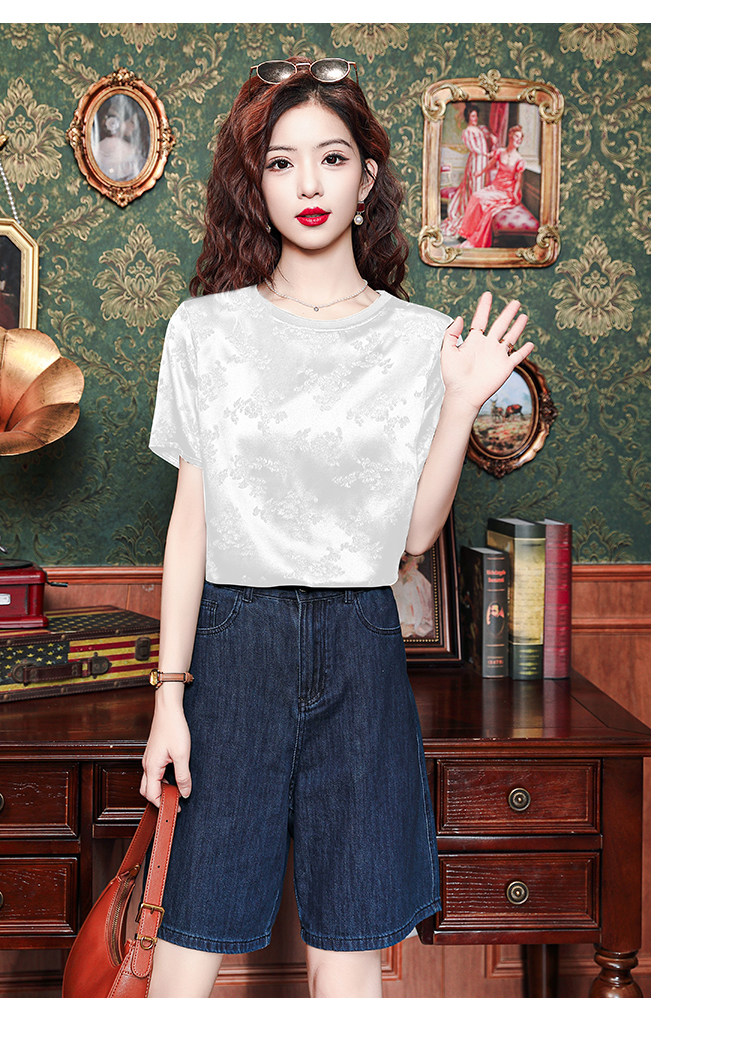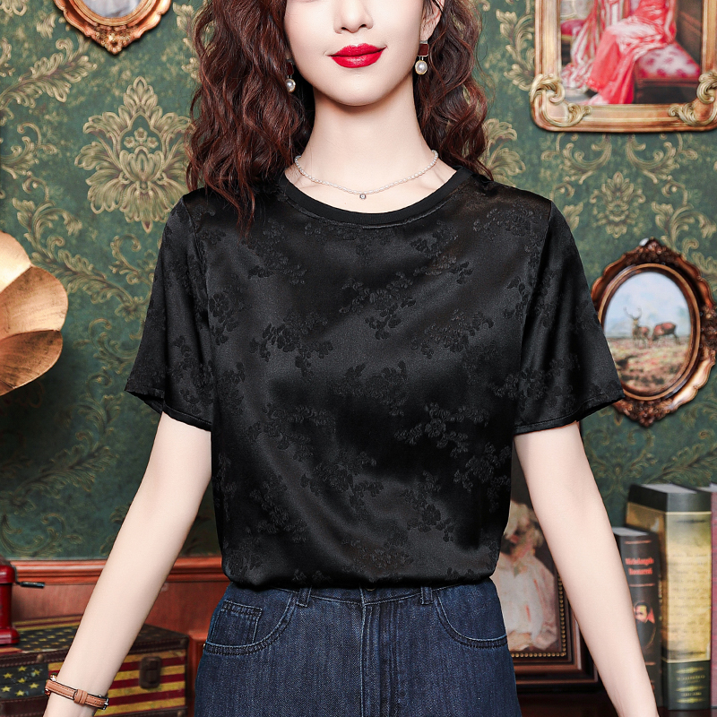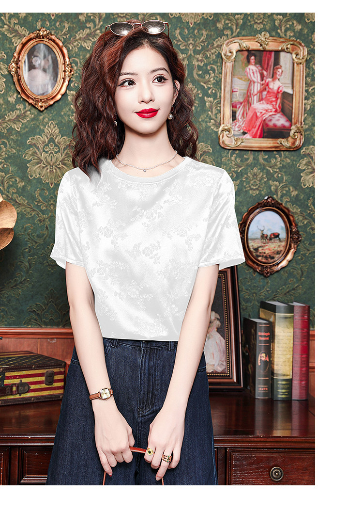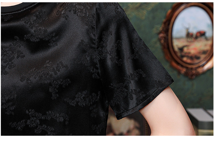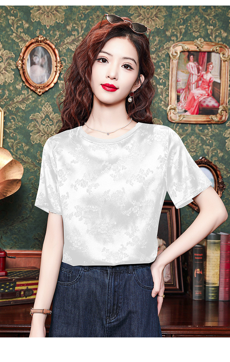 Mô tả 1:Áo lụa cổ tròn jacquard phong cách Trung Hoa sang trọng, thiết kế tinh tế dành cho các bà mẹ. Chất liệu lụa cao cấp mềm mại, thoáng mát. Kiểu dáng thanh lịch, tôn lên vẻ đẹp quý phái và trang nhã.