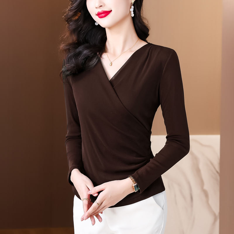 Mô tả 1:Áo sơ mi chéo không đều với thiết kế độc đáo, tạo điểm nhấn thời trang hiện đại cho các bà mẹ. Kiểu dáng ôm eo nhẹ nhàng kết hợp với chất liệu lưới thoáng khí, mang lại vẻ ngoài thanh lịch và duyên dáng. Dài tay giúp giữ ấm vừa phải, dễ phối cùng quần hoặc chân váy để tôn lên phong cách nữ tính