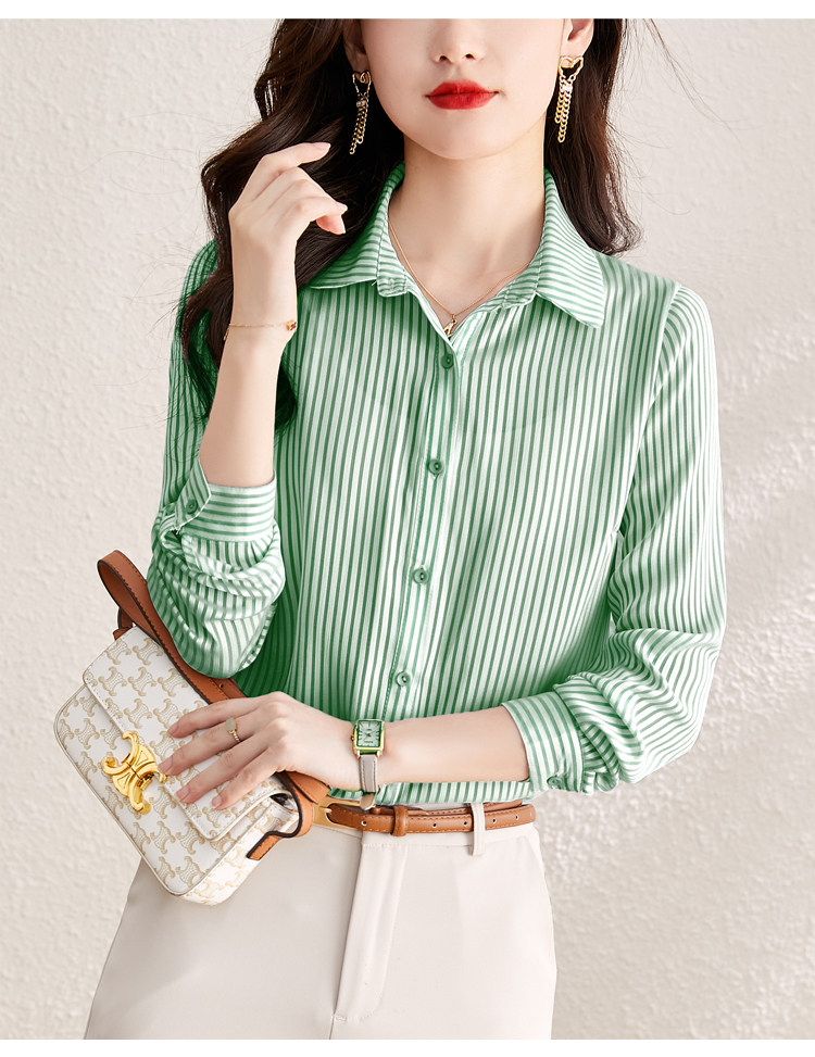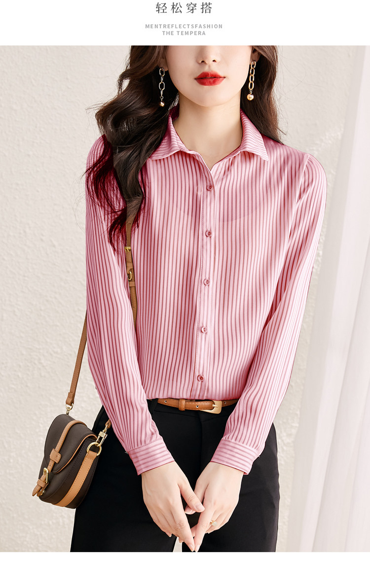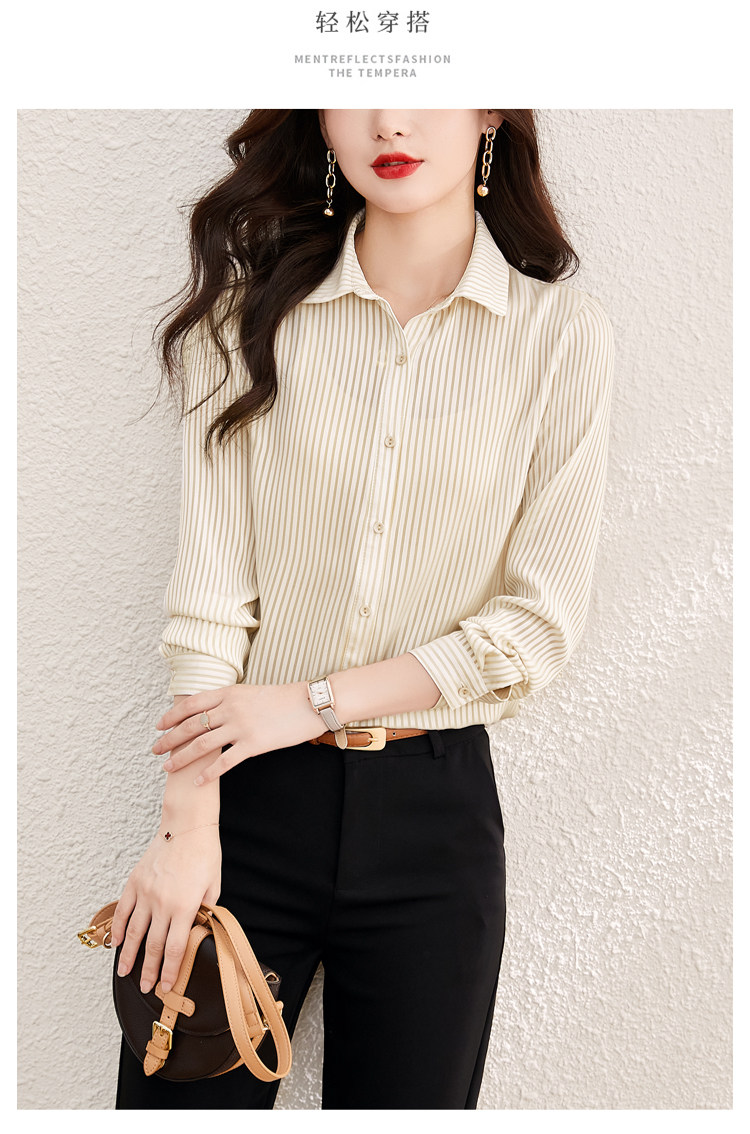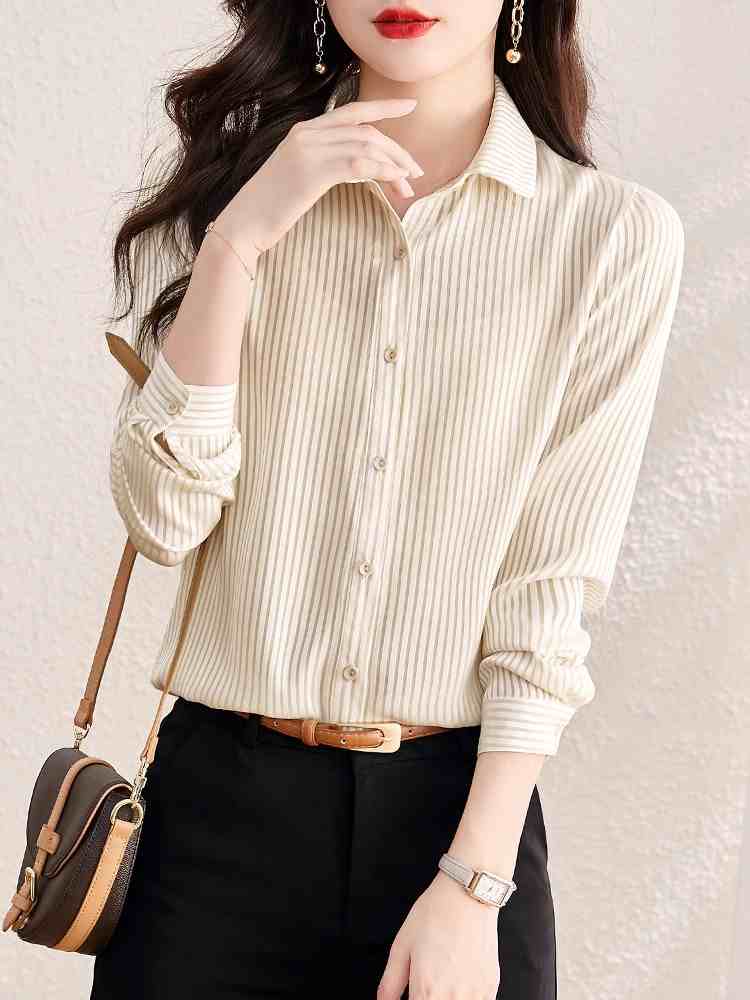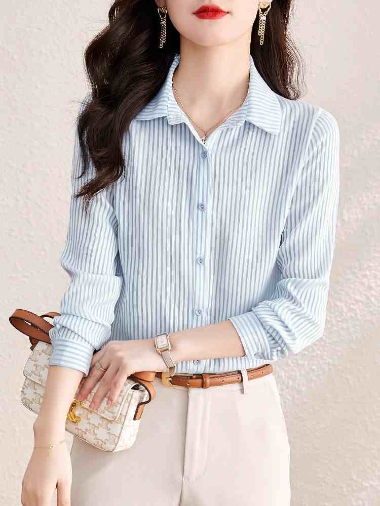 Mô tả :Áo sơ mi dài tay kẻ sọc cho nữ mùa xuân thu mang phong cách thanh lịch và chuyên nghiệp. Thiết kế kẻ sọc tinh tế giúp tôn dáng, tạo cảm giác cao ráo và thon gọn. Chất liệu chiffon mỏng nhẹ, thoáng mát, mang lại sự thoải mái khi mặc. Kiểu dáng đơn giản nhưng thời trang, phù hợp cho môi trường công sở hoặc những dịp trang trọng. Dễ dàng kết hợp với quần âu, chân váy hoặc vest để tạo nên phong cách chỉn chu và sang trọng.