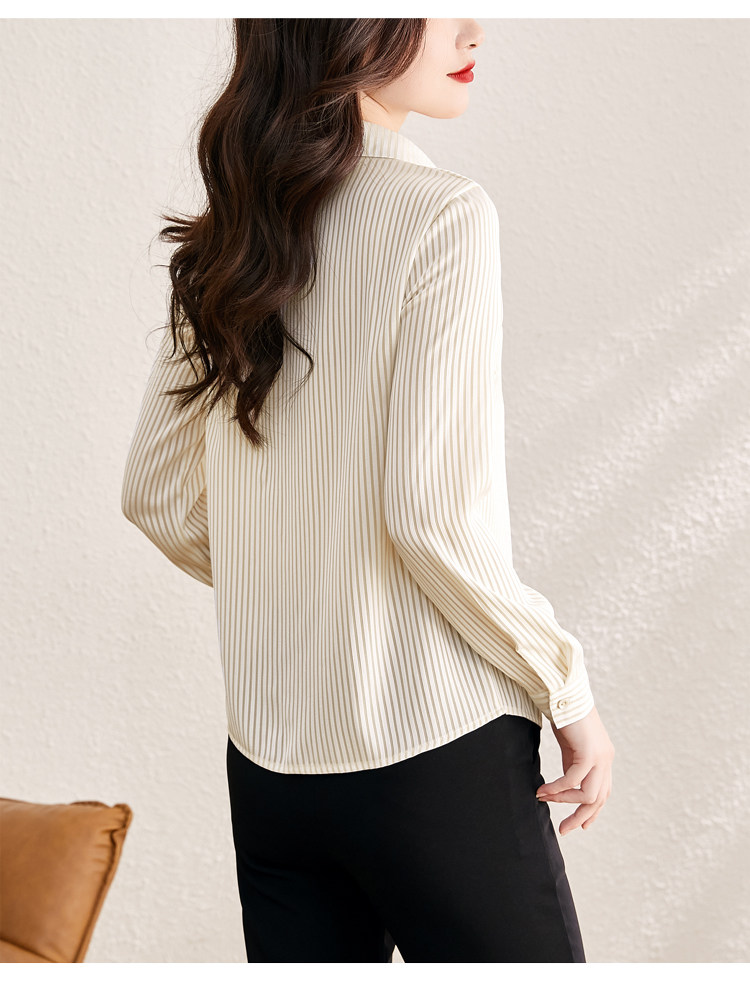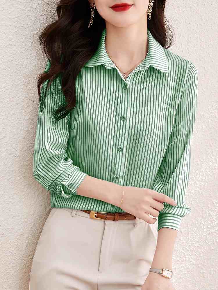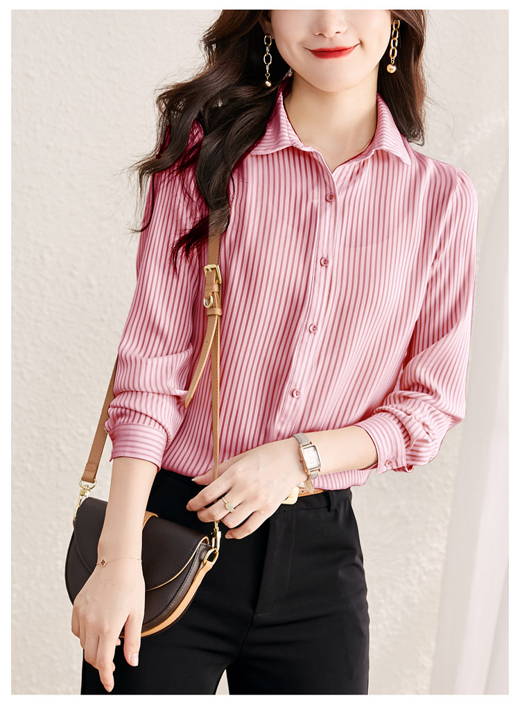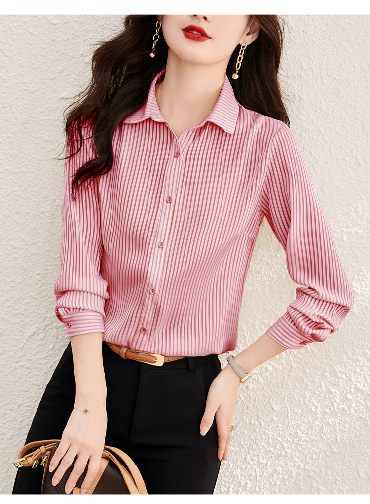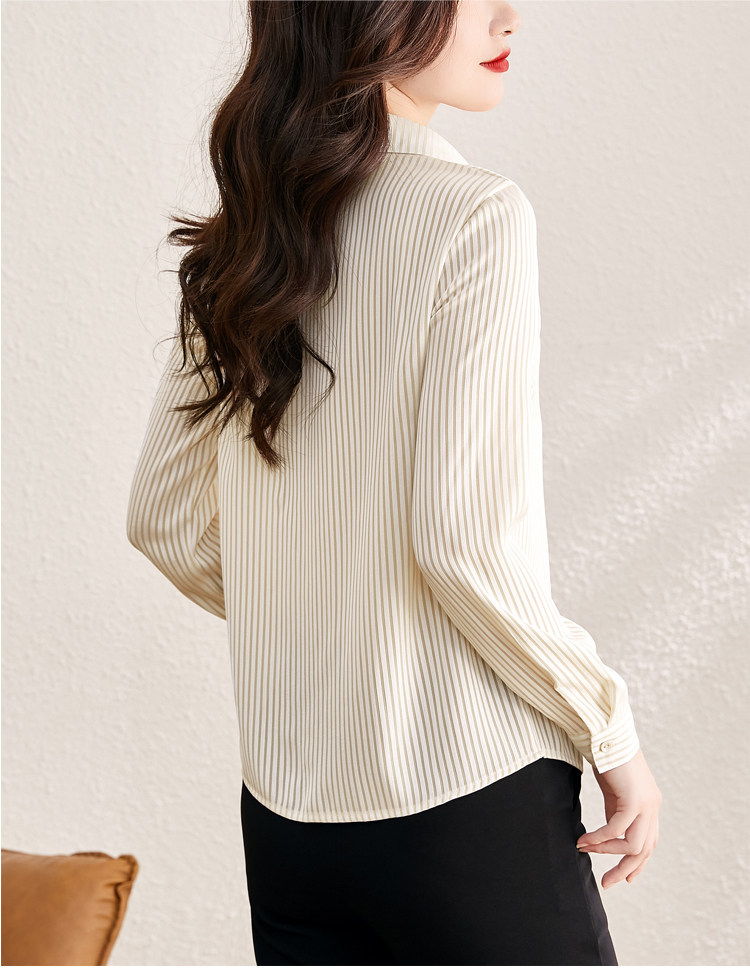 Mô tả :Áo sơ mi dài tay kẻ sọc cho nữ mùa xuân thu mang phong cách thanh lịch và chuyên nghiệp. Thiết kế kẻ sọc tinh tế giúp tôn dáng, tạo cảm giác cao ráo và thon gọn. Chất liệu chiffon mỏng nhẹ, thoáng mát, mang lại sự thoải mái khi mặc. Kiểu dáng đơn giản nhưng thời trang, phù hợp cho môi trường công sở hoặc những dịp trang trọng. Dễ dàng kết hợp với quần âu, chân váy hoặc vest để tạo nên phong cách chỉn chu và sang trọng.