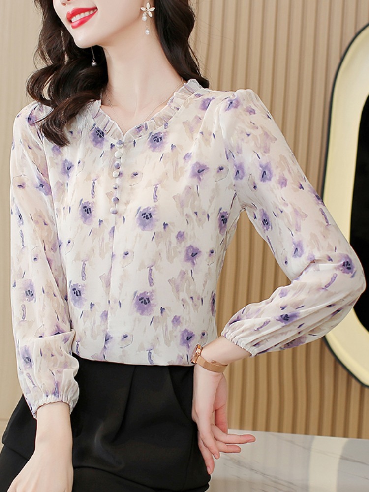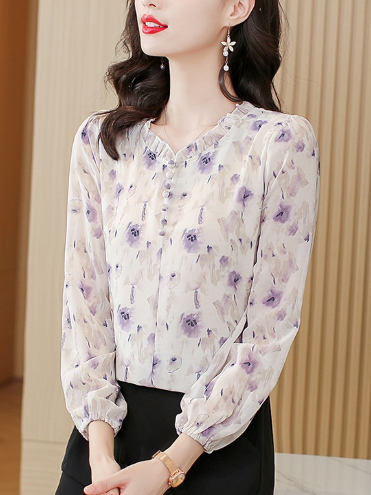 Mô tả 1:Áo sơ mi voan hoa xếp nếp kiểu Pháp thanh lịch, mang đến vẻ đẹp nhẹ nhàng và sang trọng. Thiết kế cổ chữ C độc đáo, tôn lên khí chất thanh thoát và nữ tính. Chất liệu voan mềm mại, thoáng mát và dễ dàng phối đồ thời trang.