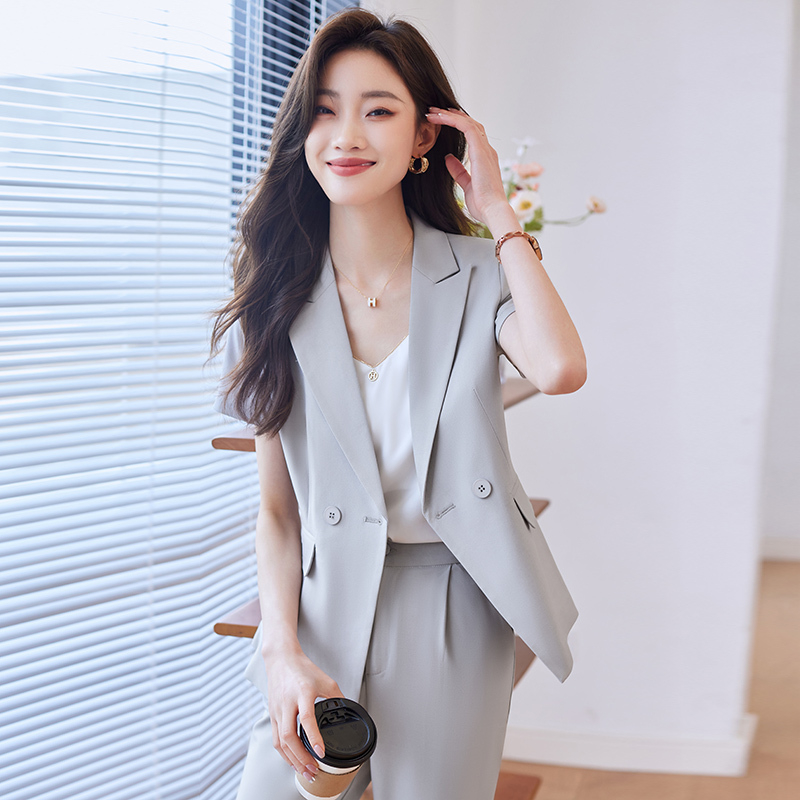 Mô tả :Bộ đồ vest nữ tay ngắn được thiết kế từ chất liệu mỏng nhẹ, thoáng khí, mang lại sự thoải mái. Kiểu dáng trang trọng và chuyên nghiệp, phù hợp cho quản lý khách sạn, nhân viên văn phòng hay các vị trí cần phong thái lịch sự. Form vest hiện đại tôn dáng, kết hợp cùng quần âu hoặc chân váy mang đến diện mạo thanh lịch, khí chất và tự tin trong công việc.