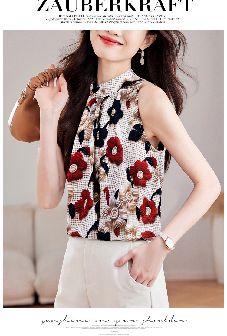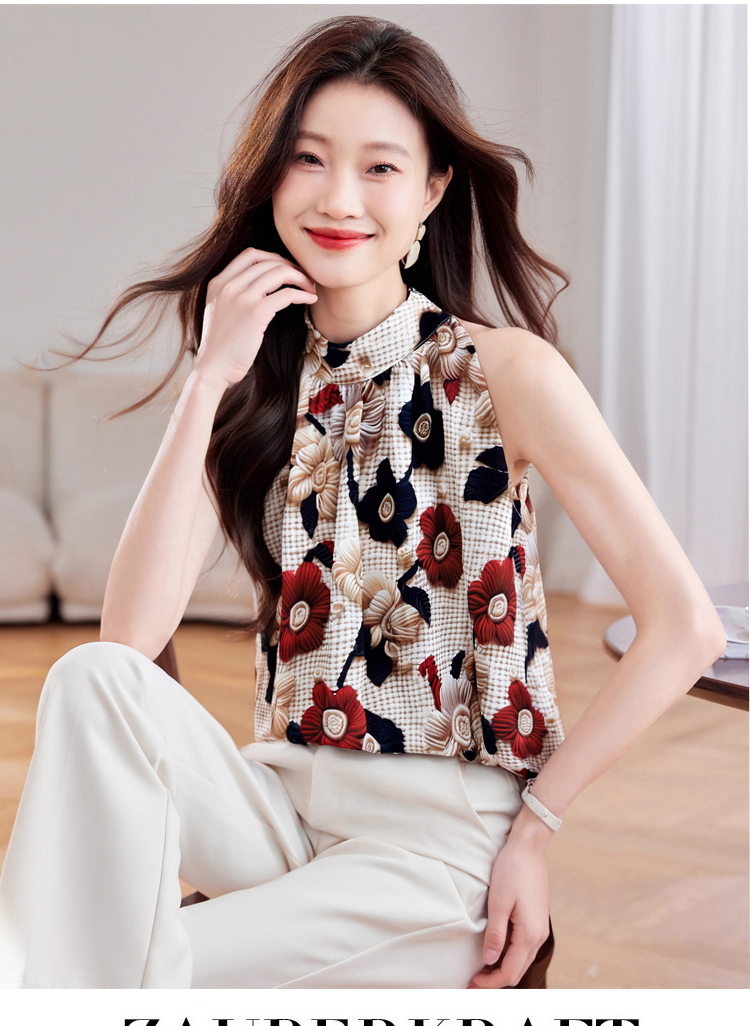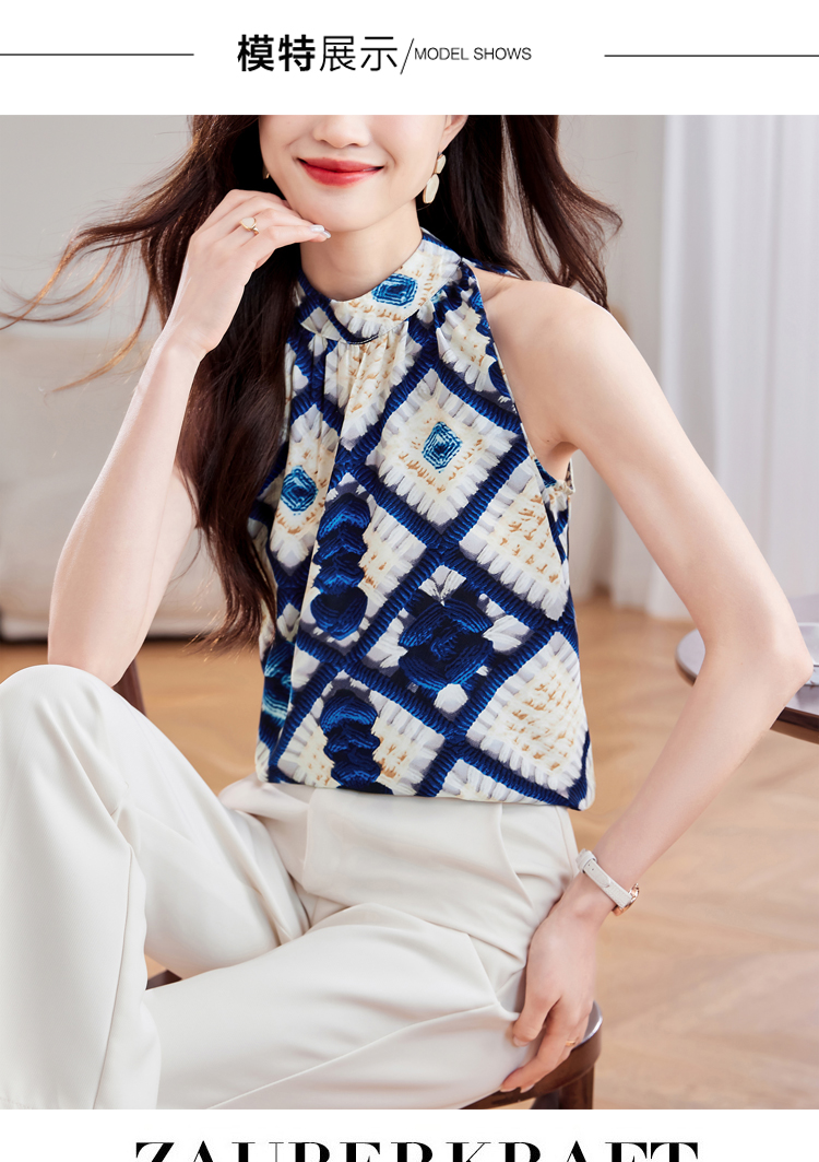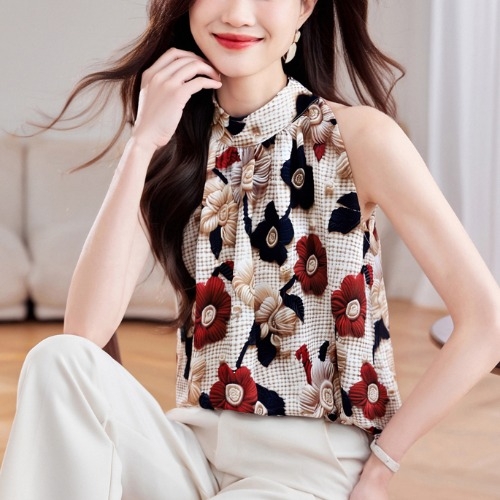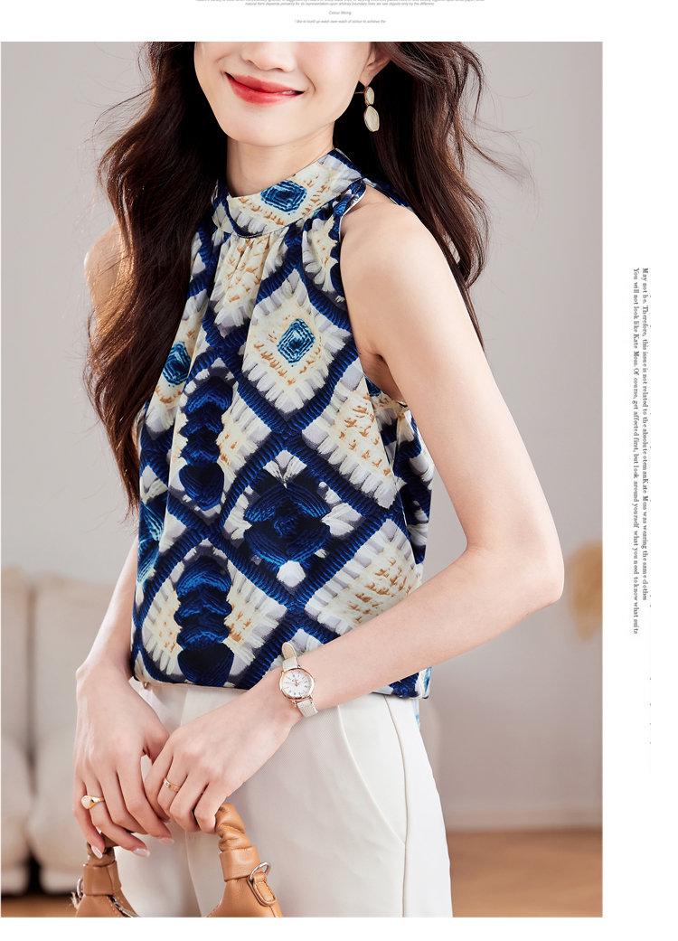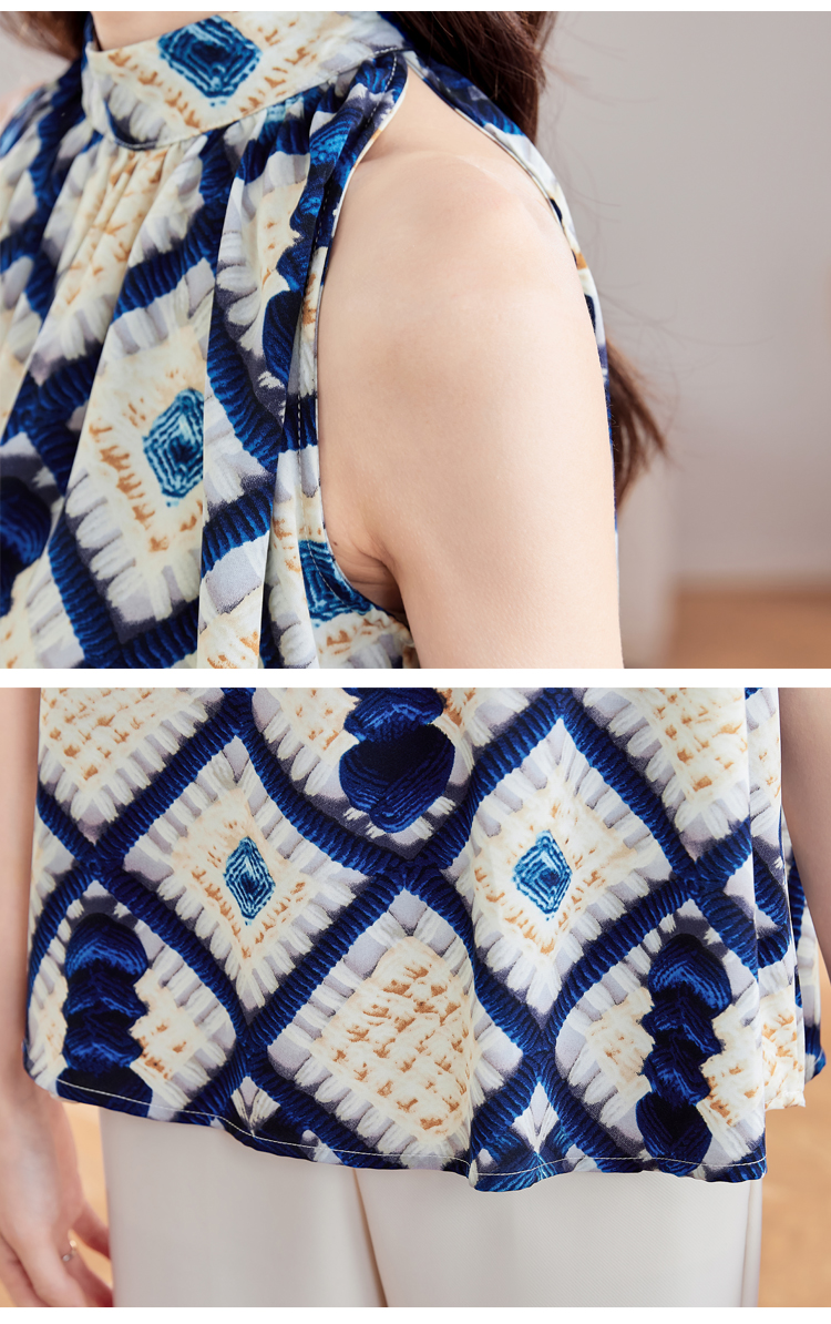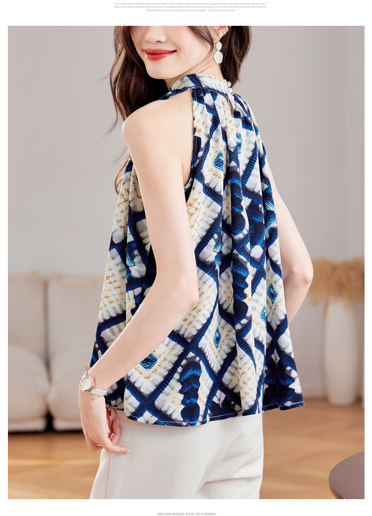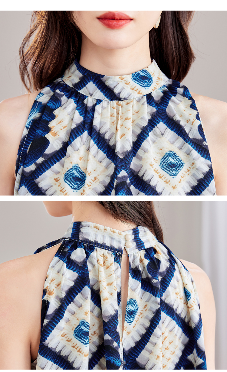 Mô tả :Áo cổ yếm không tay kiểu Pháp cho nữ mang đến vẻ đẹp tinh tế, thanh lịch và hiện đại. Chất liệu chiffon mềm nhẹ, thoáng mát, in họa tiết thời thượng, dễ dàng tôn lên phong cách nữ tính. Thiết kế cổ yếm và dáng rộng giúp che bụng khéo léo, tạo cảm giác thon gọn, thanh thoát. Đây là lựa chọn lý tưởng cho những cô nàng yêu thích sự sang trọng nhưng vẫn thoải mái.