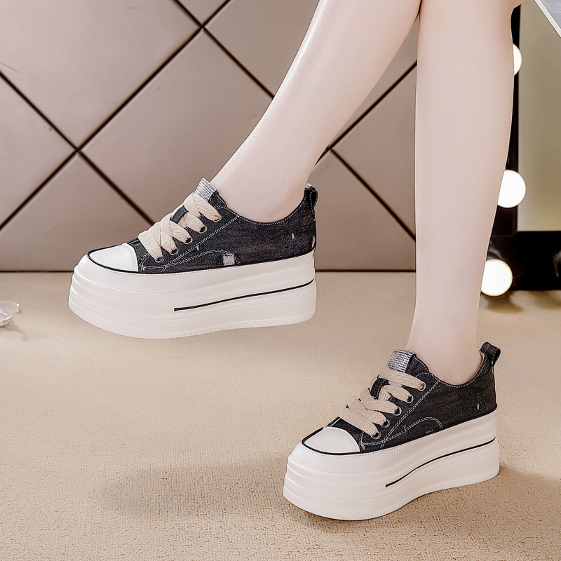 Mô tả :Giày thể thao đế dày 6cm mang đến hiệu ứng tăng chiều cao tự nhiên, giúp dáng người thon gọn và cao ráo hơn. Thiết kế trẻ trung, hiện đại với chất liệu vải canvas thoáng khí bên trong, tạo cảm giác thoải mái khi mang cả ngày. Kiểu dáng đế xuồng thời trang năng động. Đây là lựa chọn lý tưởng cho nữ yêu thích sự tiện dụng, vừa cá tính vừa dễ phối đồ.