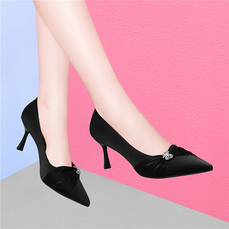 Mô tả :Đôi giày cao gót thời trang kiểu Pháp dành cho nữ mang thiết kế độc đáo, thanh lịch và sang trọng. Chất liệu da cao cấp kết hợp với dáng giày mũi nhọn tạo nên vẻ ngoài tinh tế và nữ tính. Phần gót nhỏ vừa phải giúp tôn dáng mà vẫn thoải mái khi di chuyển. Đây là mẫu giày lý tưởng để phối cùng trang phục công sở, dạ tiệc hay phong cách thường ngày thanh lịch.