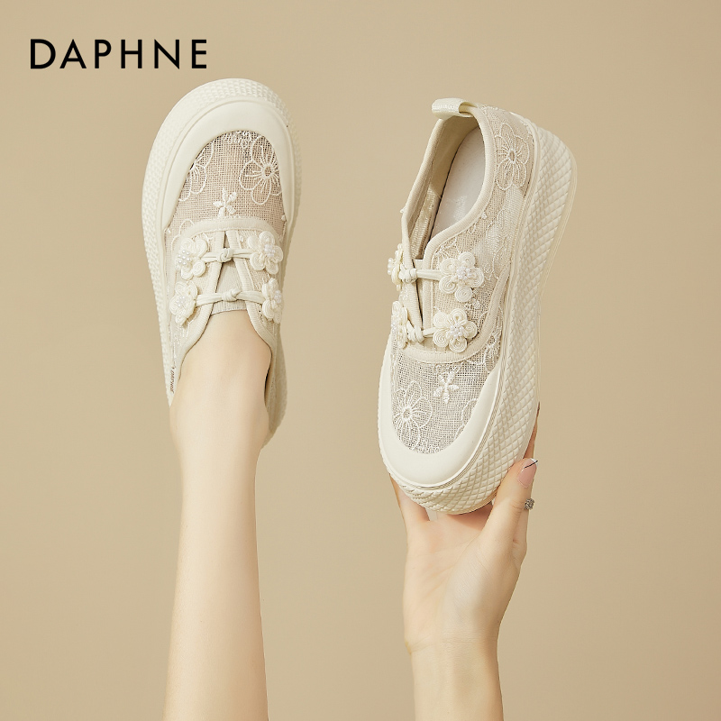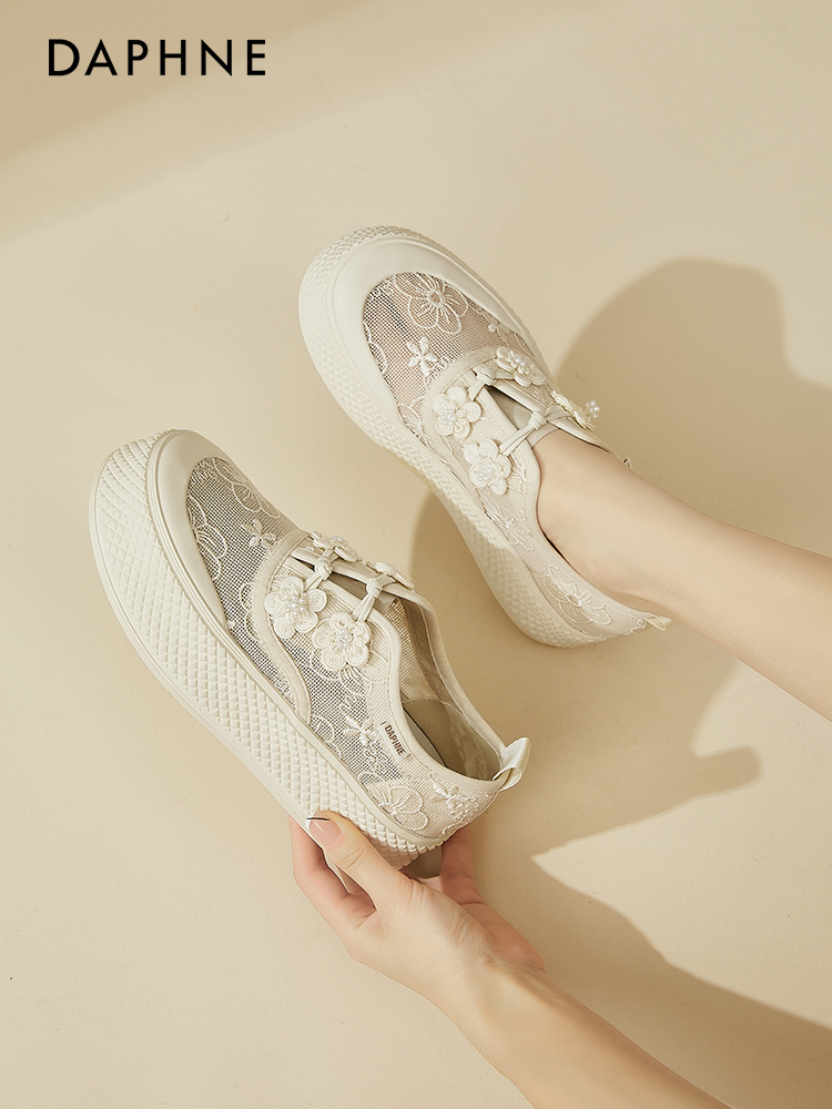 Mã L825: Giày lười ren Daphne màu trắng giày lười thoáng khí cho nữ