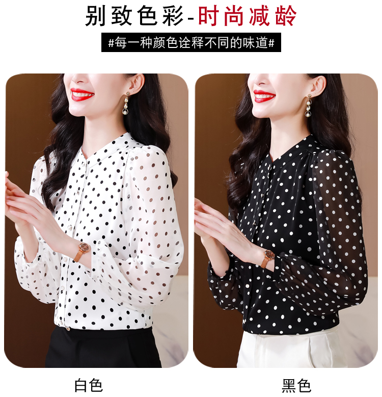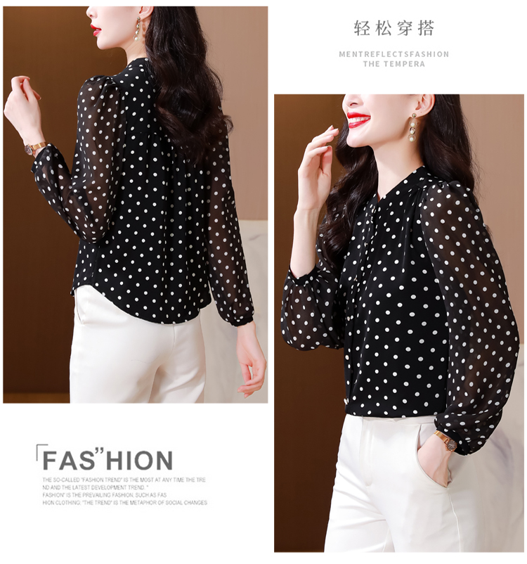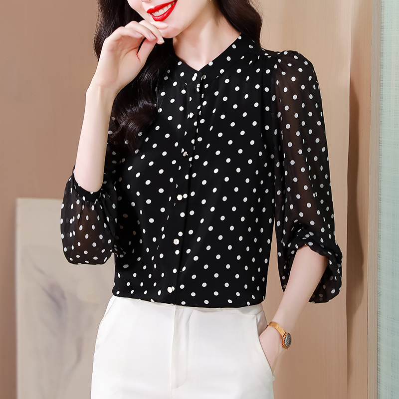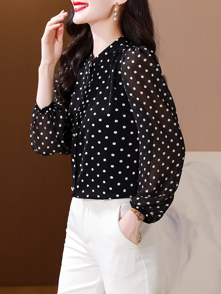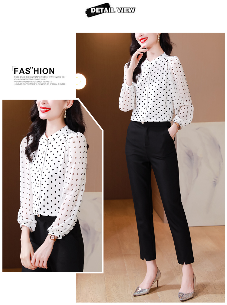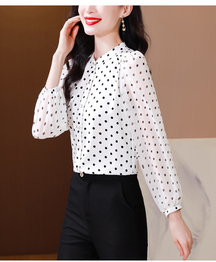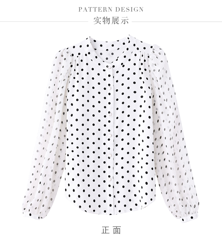 Mô tả :Áo sơ mi voan dài tay cổ đứng nữ mang phong cách thanh lịch, nhẹ nhàng và sang trọng. Thiết kế chấm bi tinh tế kết hợp cổ đứng giúp tôn lên vẻ duyên dáng và trẻ trung. Chất liệu voan cao cấp mềm mại, thoáng mát. Kiểu dáng hiện đại, dễ phối đồ, giúp người mặc vừa thời trang vừa giảm tuổi hiệu quả.