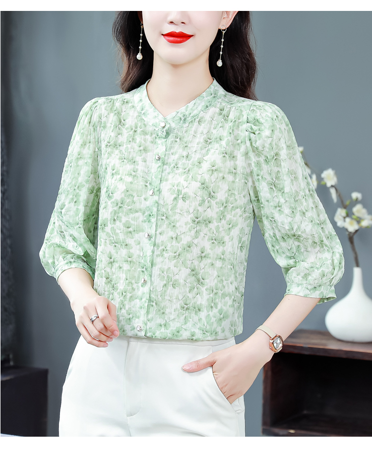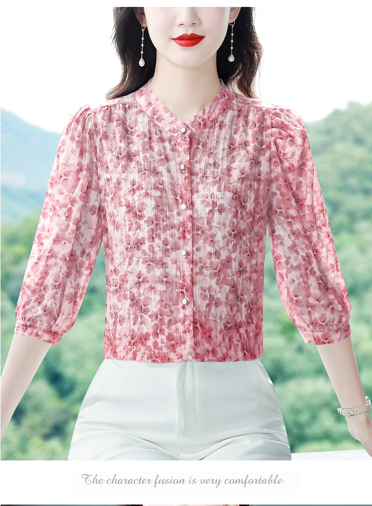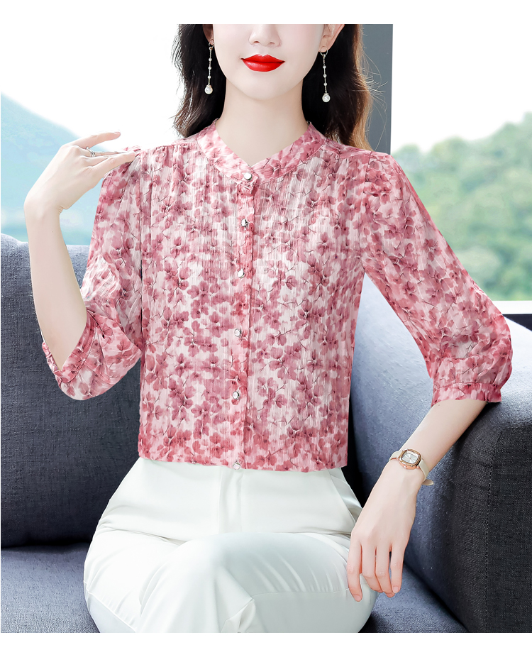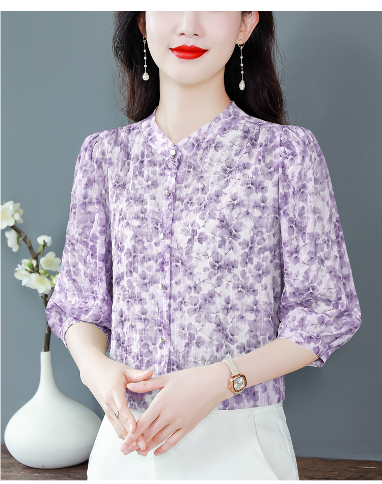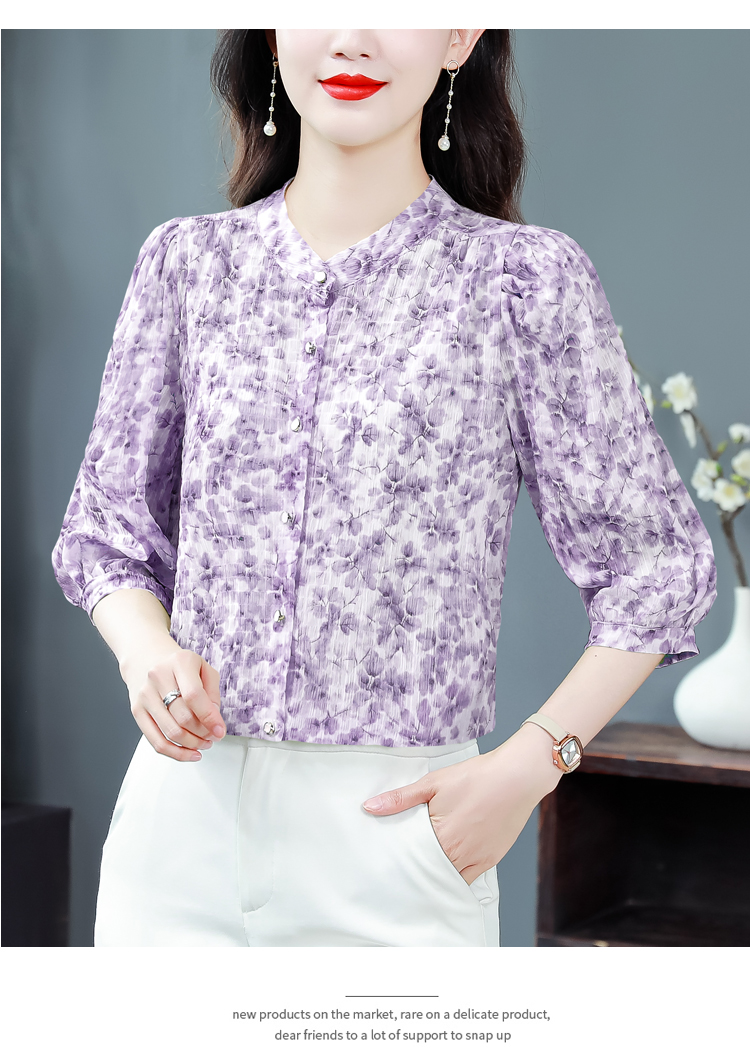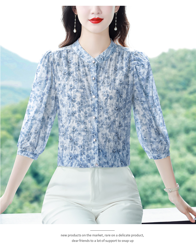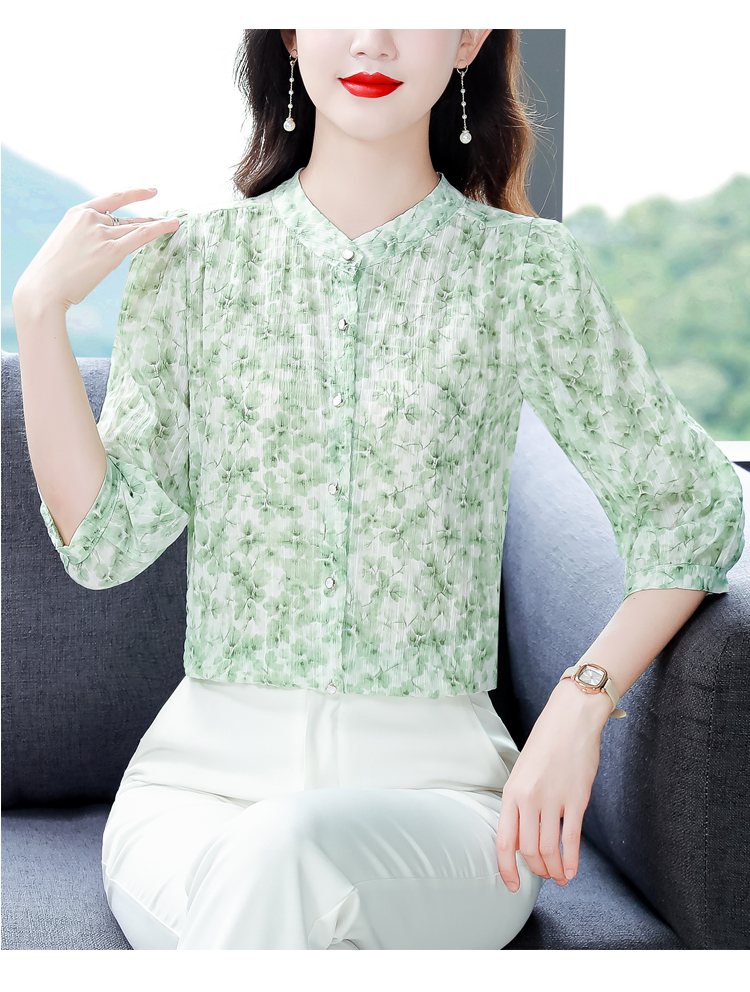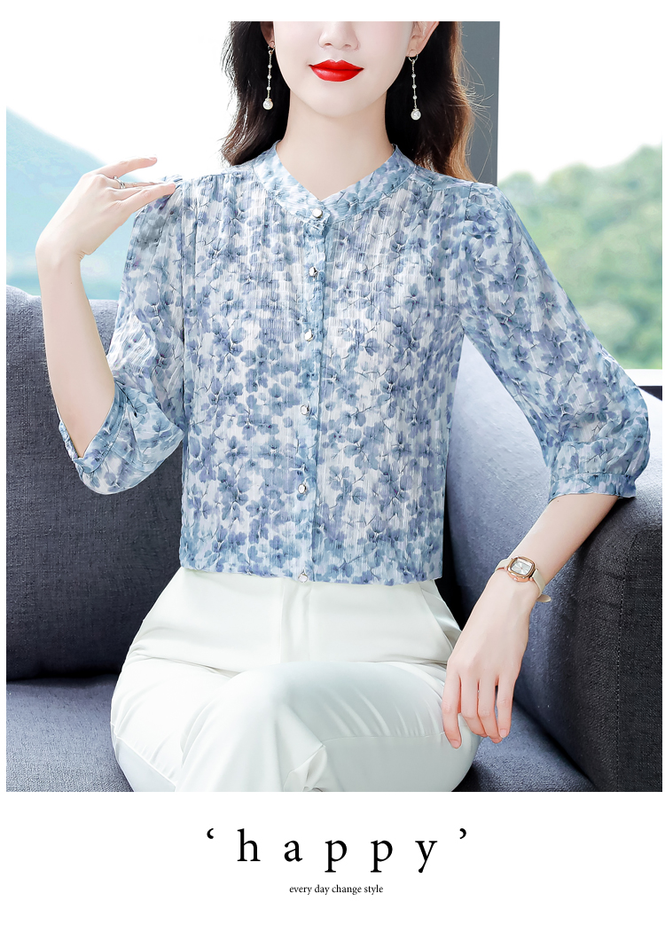 Mô tả :Áo sơ mi voan hoa nữ kiểu mới mang phong cách trẻ trung và thanh lịch, giúp mẹ trông trẻ hơn và đầy sức sống. Thiết kế tay lửng, tay ba phần nhẹ nhàng, thoáng mát. Chất liệu voan cao cấp mềm mại, in hoa tinh tế, tôn lên vẻ đẹp dịu dàng và khí chất. Dáng áo vừa vặn, dễ phối với quần hoặc chân váy, thích hợp cho cả đi làm lẫn dạo phố.