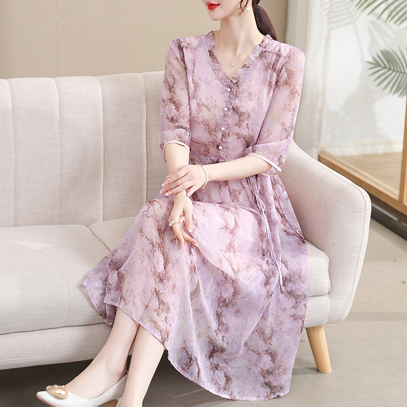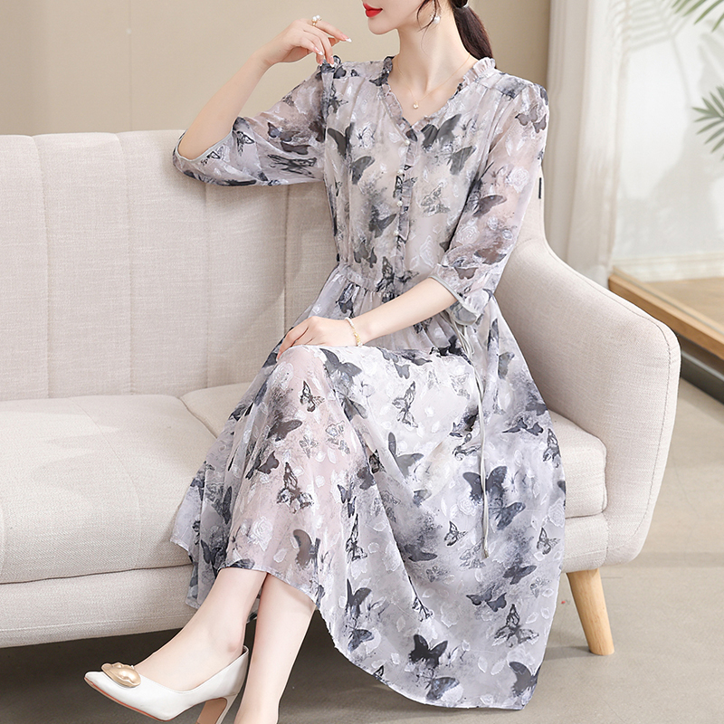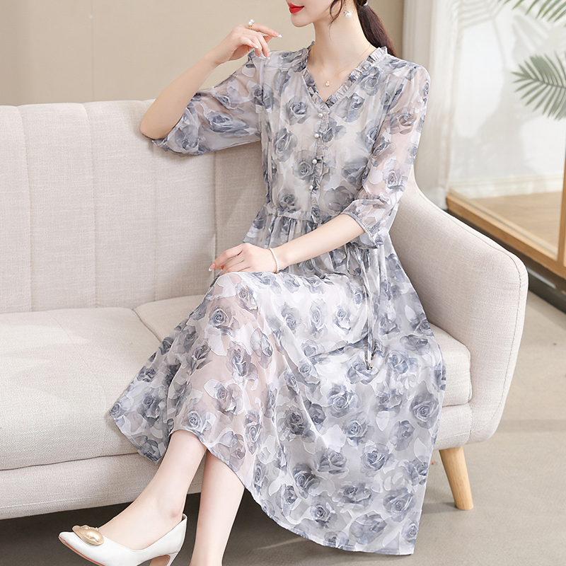 Mô tả :Váy lụa mang đến vẻ đẹp thanh lịch và tinh tế dành cho các bà mẹ. Thiết kế tay ngắn và phần eo được bo nhẹ giúp tôn dáng mà vẫn giữ được sự thoải mái. Chất liệu lụa mềm mại, thoáng mát. Kiểu dáng mới kết hợp chiều dài váy tinh tế tạo nên phong thái sang trọng cho phụ nữ trung niên. Đây là mẫu váy lý tưởng cho đi làm, đi chơi hay dự tiệc nhẹ.