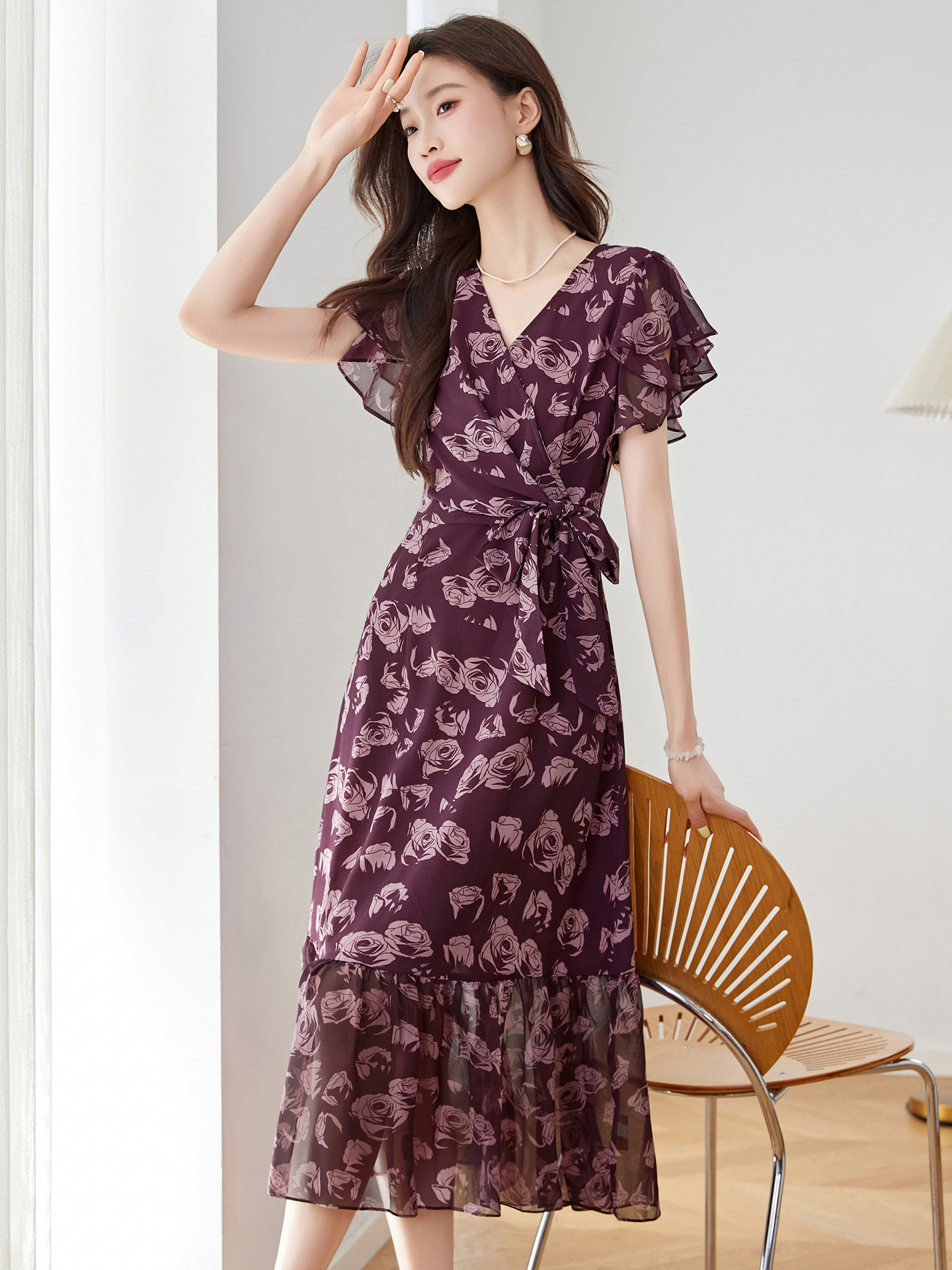 Mô tả :Váy in hoa hồng phong cách Pháp mang vẻ đẹp thanh lịch và lãng mạn. Thiết kế cổ chữ V nhẹ nhàng kết hợp dáng ôm eo giúp tôn lên đường cong tự nhiên của cơ thể. Chất liệu lụa mềm mại, thoáng mát mang lại cảm giác dễ chịu khi mặc. Họa tiết hoa hồng tinh tế tạo điểm nhấn nữ tính, phù hợp cho những buổi dạo phố hay gặp gỡ nhẹ nhàng.