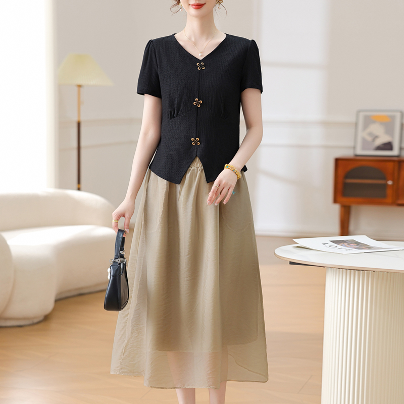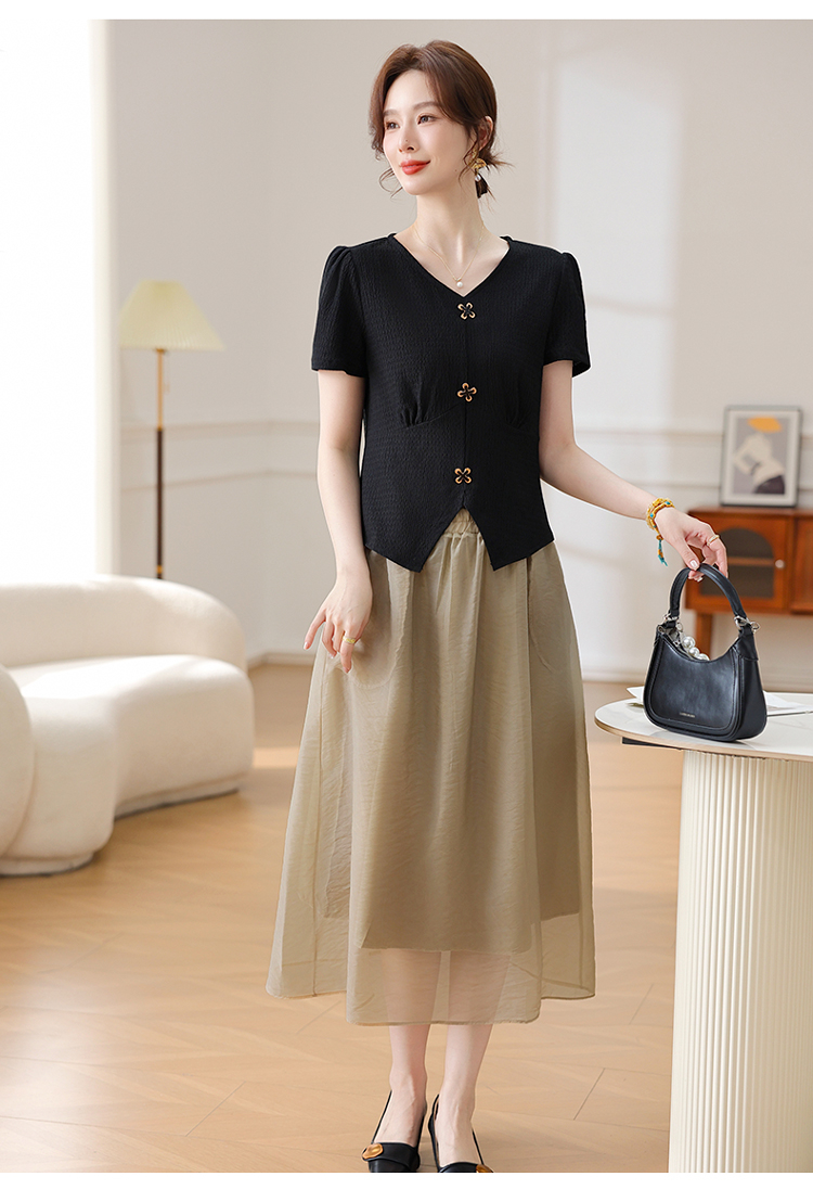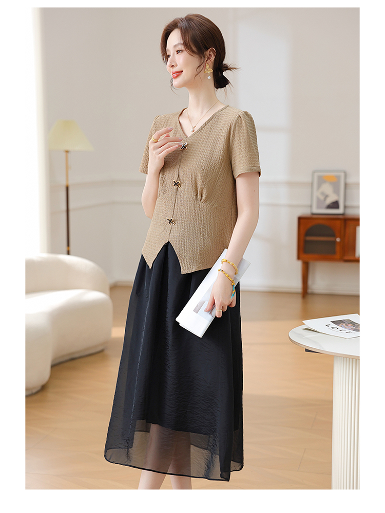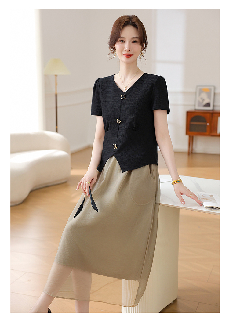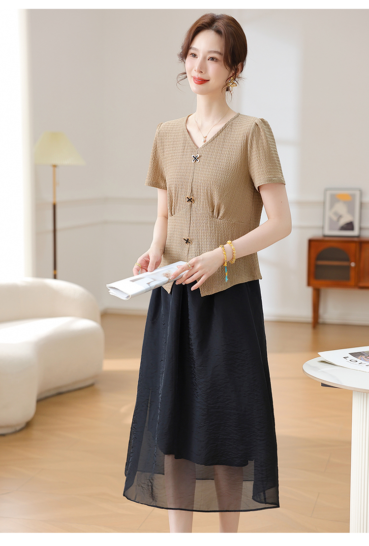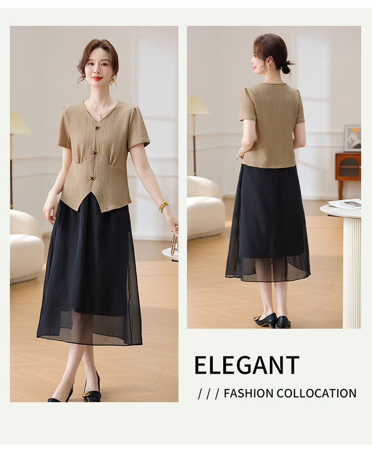 Mô tả :Bộ váy vest dành cho mẹ trung niên mang phong cách phương Tây thanh lịch và sang trọng. Thiết kế gồm áo phông ngắn tay kết hợp cùng chân váy vest giúp người mặc vừa thoải mái vừa giữ được vẻ đứng đắn, khí chất. Chất liệu mát nhẹ, thoáng khí. Kiểu dáng tôn dáng, che khuyết điểm tốt, giúp mẹ luôn trẻ trung và tự tin. Đây là lựa chọn hoàn hảo cho phụ nữ trung niên yêu thích phong cách tinh tế và hiện đại.