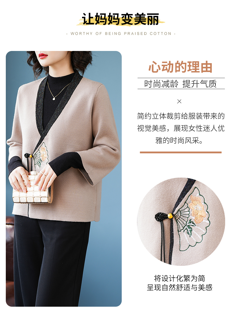 Mô tả :Áo khoác ngắn phong cách Trung Hoa dành cho mẹ mang vẻ đẹp thanh lịch và sang trọng. Thiết kế dệt kim mềm mại, được thêu tinh xảo tạo điểm nhấn quý phái. Dáng áo vừa vặn, tôn dáng, giữ ấm nhẹ mà vẫn thoải mái khi mặc. Phù hợp cho phụ nữ trung niên và người cao tuổi yêu thích phong cách truyền thống pha hiện đại. Thích hợp mặc đi chơi, dự tiệc hay dạo phố.