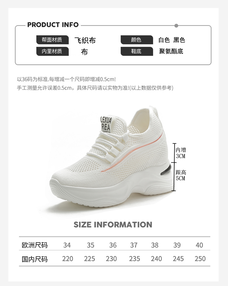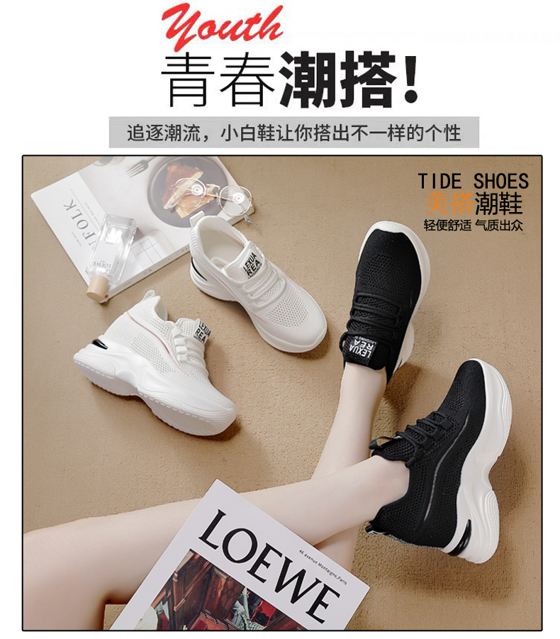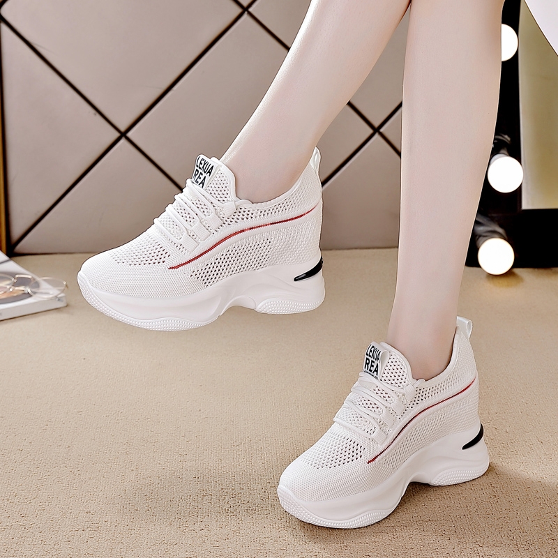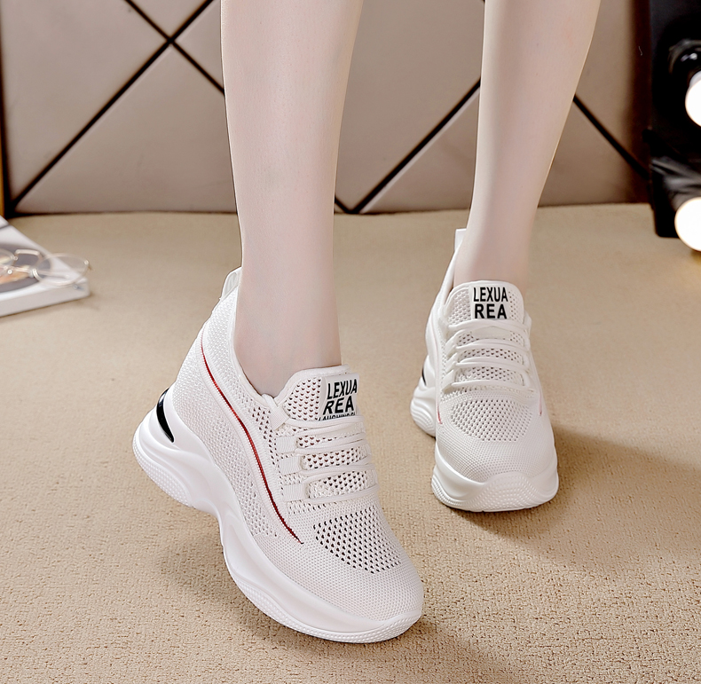 Mô tả :Giày thể thao nữ thiết kế mới với phần thân bằng lưới mỏng thoáng khí, có các lỗ nhỏ giúp chân luôn khô ráo. Đế giày tích hợp gót ẩn nhẹ nhàng, giúp tăng chiều cao tự nhiên mà vẫn thoải mái khi di chuyển. Màu trắng thanh lịch, dễ phối đồ và phù hợp với nhiều phong cách. Đôi giày mang lại cảm giác nhẹ nhàng, năng động và thời trang.