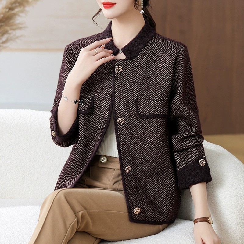 Mô tả :Áo khoác cardigan dệt kim cổ đứng dành cho phụ nữ trung niên, mang phong cách thanh lịch và trang nhã. Thiết kế ngắn gọn. Chất liệu len mềm mại, thoáng khí và giữ ấm nhẹ nhàng. Dễ phối cùng váy hoặc quần, tôn dáng và tạo cảm giác trẻ trung, tinh tế.