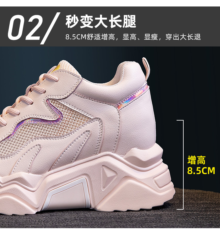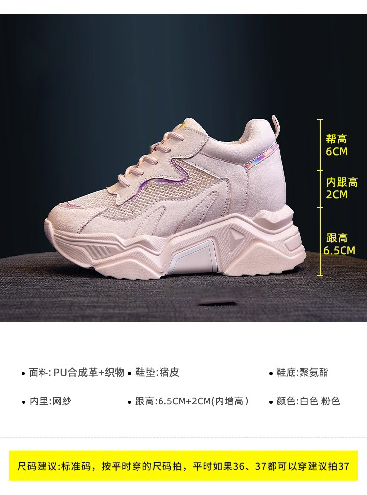Mô tả :Giày thể thao đế dày nữ phong cách mang thiết kế trẻ trung, năng động và hợp xu hướng. Phần đế cao giấu nêm giúp tôn dáng mà vẫn êm ái, dễ di chuyển. Chất liệu lưới thoáng khí giữ cho đôi chân luôn khô thoáng, thoải mái cả ngày. Kiểu dáng thời trang, dễ phối đồ, phù hợp cho đi học, đi làm hay dạo phố.