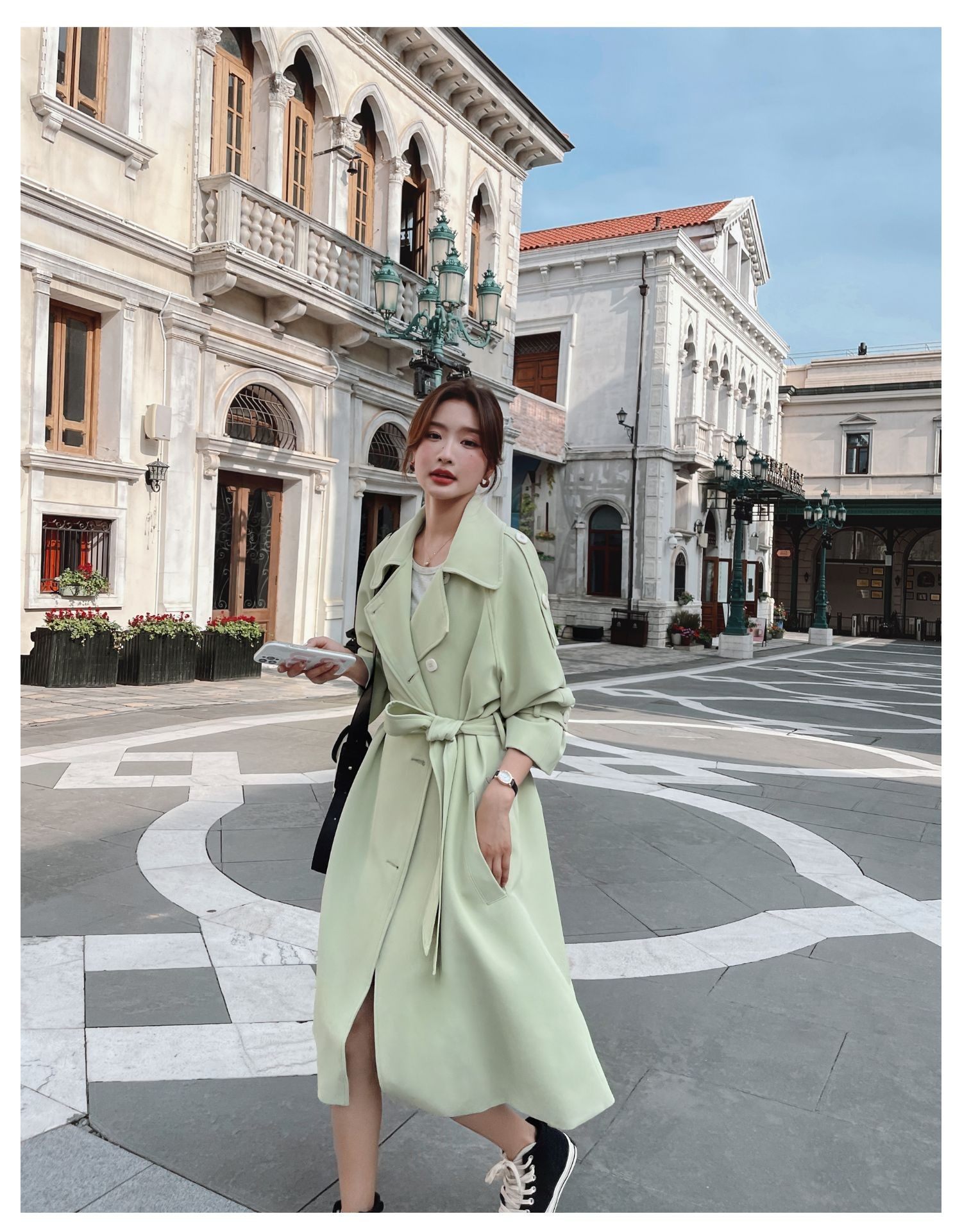 Mô tả :Áo khoác dáng dài màu xanh lá cây thanh lịch kiểu Anh là item nổi bật. Gam xanh lá nhẹ nhàng tạo cảm giác tươi mới, tinh tế và sang trọng cho người mặc. Form dáng dài giúp tôn vóc dáng và tạo sự uyển chuyển khi di chuyển. Chất liệu mềm mại, thoáng nhẹ nhưng vẫn giữ ấm vừa đủ. Đây là lựa chọn hoàn hảo cho phái đẹp yêu thích phong cách thời trang lịch thiệp, hiện đại.