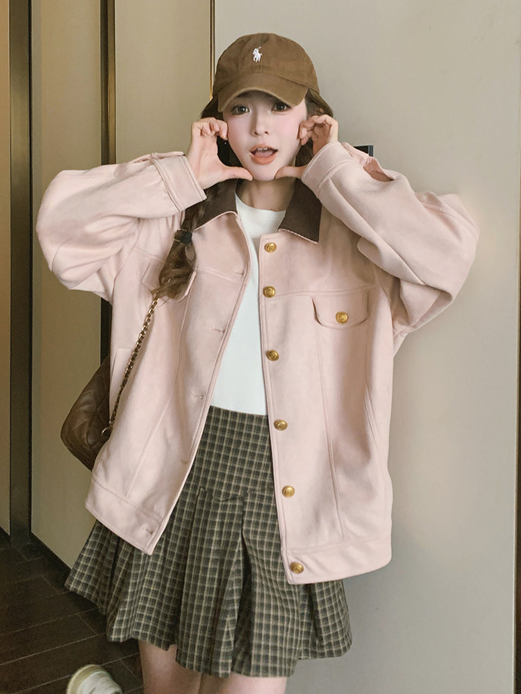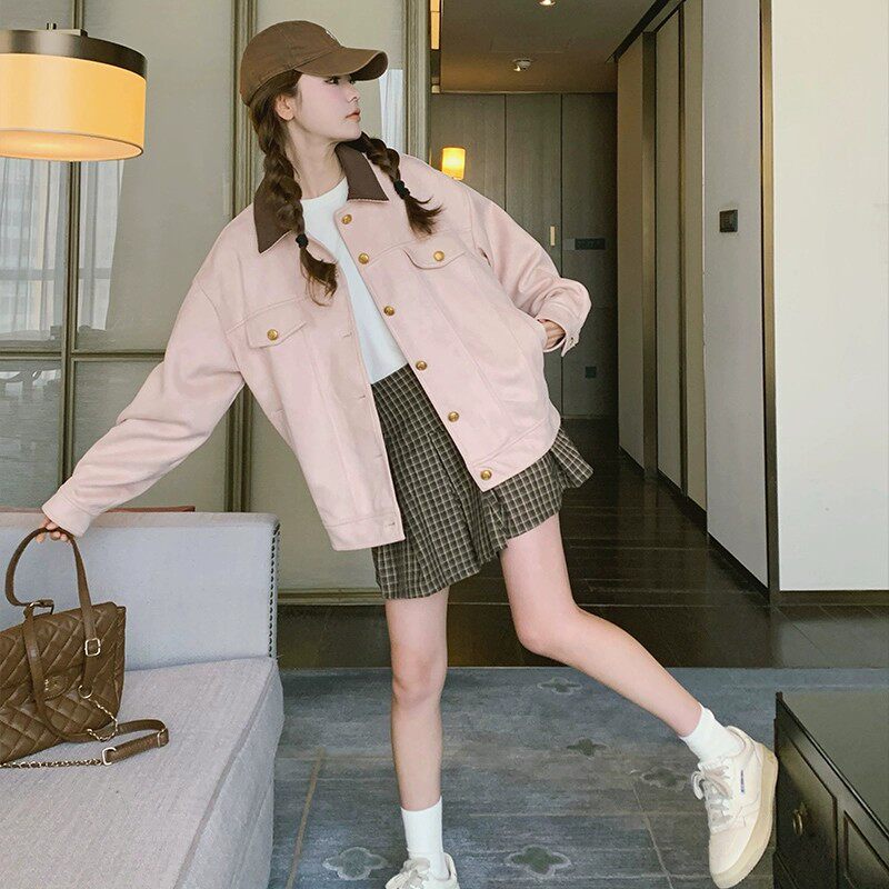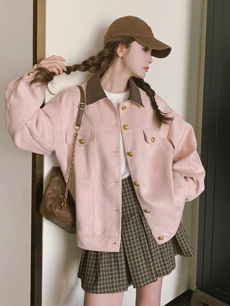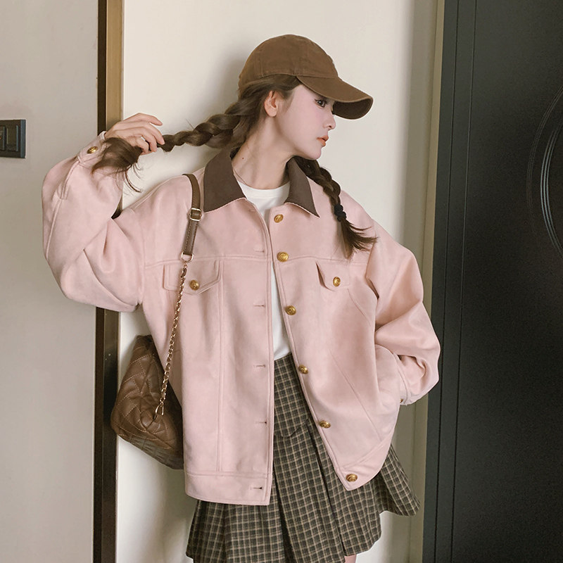 Mô tả :Áo khoác da lộn màu hồng mang phong cách trẻ trung, độc đáo và cực kỳ dễ thương dành cho phái nữ. Chất liệu da lộn cao cấp mềm mại, giữ form đẹp và tạo cảm giác thoải mái khi mặc. Thiết kế áo khoác ngắn hiện đại giúp tôn dáng và dễ dàng phối với nhiều trang phục khác nhau, vừa giữ ấm nhẹ vừa thời trang. Đây là lựa chọn hoàn hảo cho những cô nàng yêu thích phong cách nữ tính nhưng vẫn cá tính.