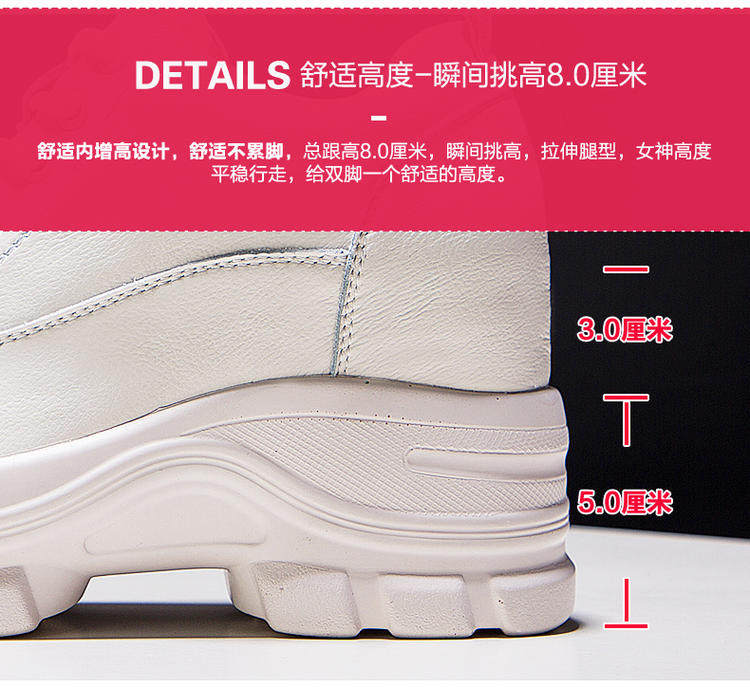 Mô tả :Giày thể thao nữ màu trắng với thiết kế tăng chiều cao ẩn 8cm giúp dáng vóc cao ráo mà vẫn tự nhiên. Mẫu mang phong cách Hàn Quốc trẻ trung, năng động. Kiểu dáng gọn gàng, dễ phối đồ, đặc biệt phù hợp với học sinh. Chất liệu cao cấp, đế êm và chắc chắn, thích hợp cho nhiều hoạt động hằng ngày.