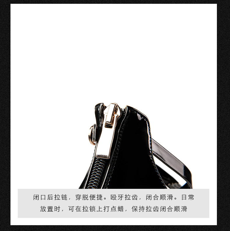 Mô tả :Giày cao gót hở mũi bằng da bóng mang phong cách mới, nổi bật với vẻ ngoài sang trọng và gợi cảm. Thiết kế gót nhọn tinh tế giúp tôn dáng, tạo hiệu ứng đôi chân thon dài. Khóa cài đơn chắc chắn, dễ điều chỉnh, mang lại cảm giác ôm chân khi di chuyển. Phần đế platform chống thấm nước vừa thời trang vừa tiện dụng, phù hợp cho cả đi tiệc lẫn dạo phố.