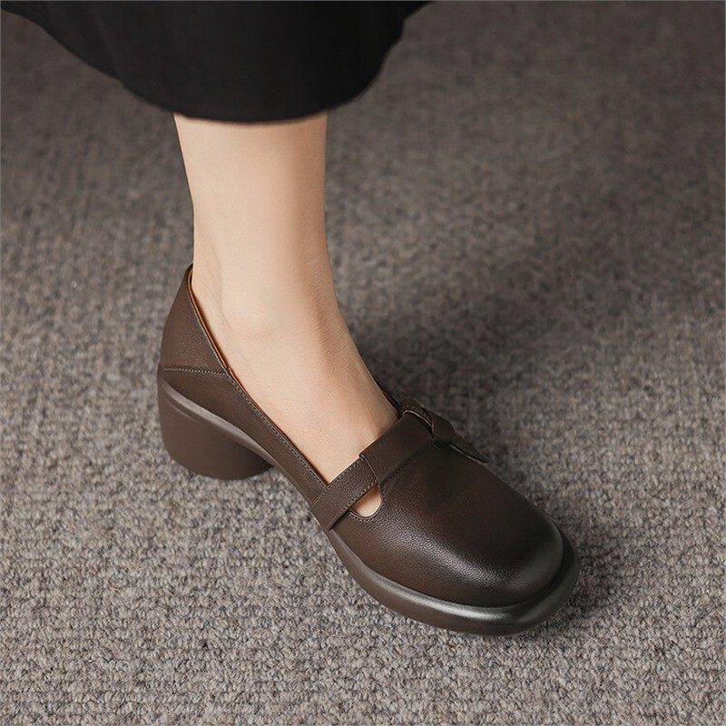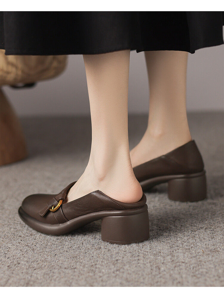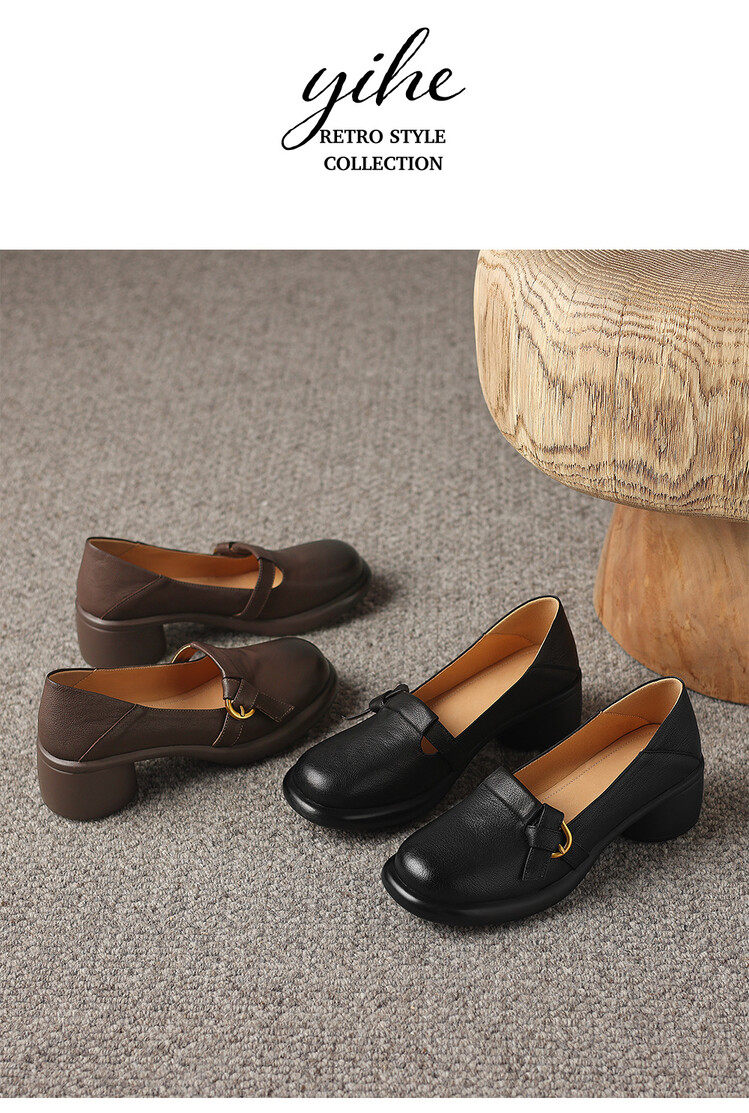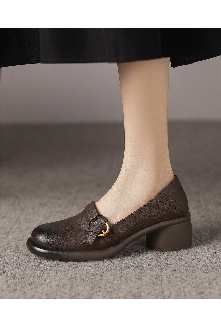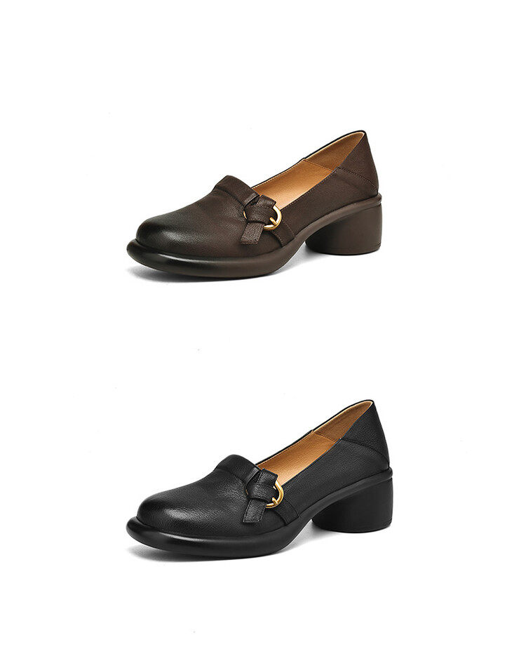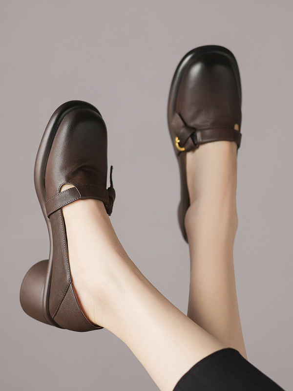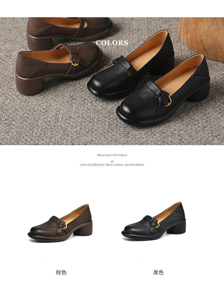 Mô tả :Giày nữ da thật cao gót đế dày mang phong cách retro, thiết kế mũi tròn và miệng giày thấp tạo cảm giác mềm mại, nữ tính. Gót cao vừa phải kết hợp đế xuồng chắc chắn giúp tôn dáng mà vẫn êm ái khi di chuyển. Kiểu giày lười tiện lợi, dễ mang, phù hợp cho nhịp sống hiện đại. Lấy cảm hứng từ phong cách Anh cổ điển, sản phẩm toát lên vẻ thanh lịch, sang trọng và dễ phối đồ.