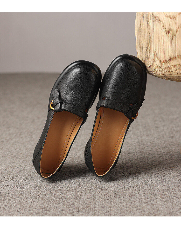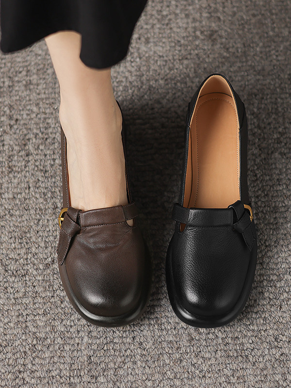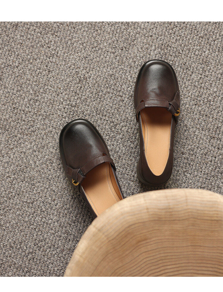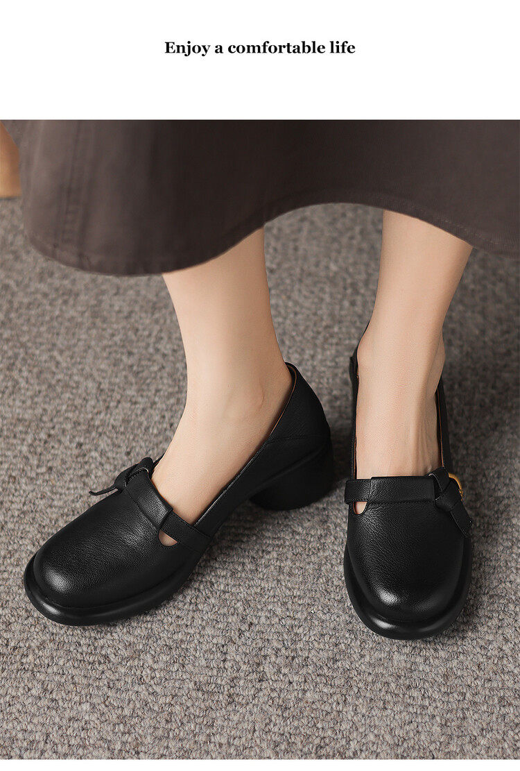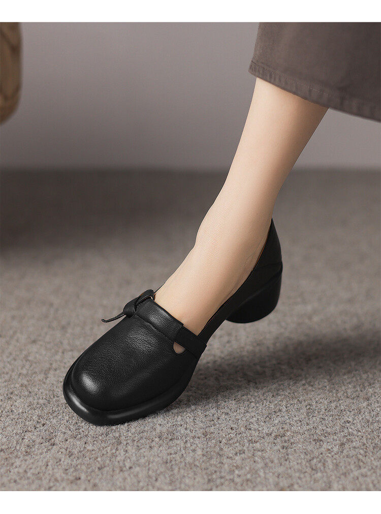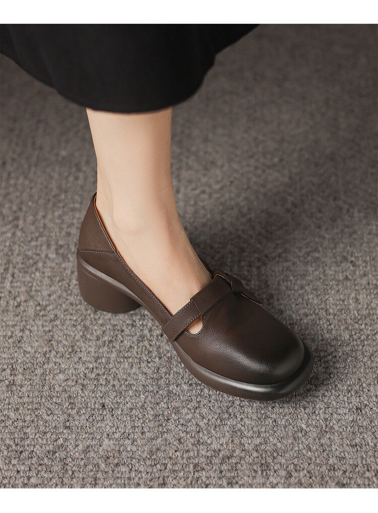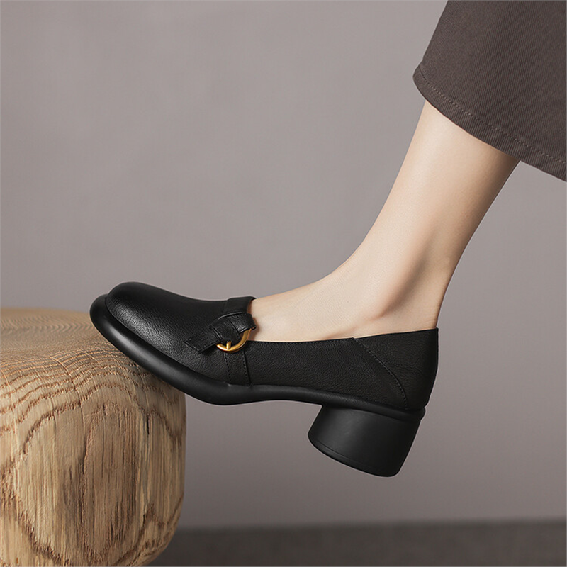 Mô tả :Giày nữ da thật cao gót đế dày mang phong cách retro, thiết kế mũi tròn và miệng giày thấp tạo cảm giác mềm mại, nữ tính. Gót cao vừa phải kết hợp đế xuồng chắc chắn giúp tôn dáng mà vẫn êm ái khi di chuyển. Kiểu giày lười tiện lợi, dễ mang, phù hợp cho nhịp sống hiện đại. Lấy cảm hứng từ phong cách Anh cổ điển, sản phẩm toát lên vẻ thanh lịch, sang trọng và dễ phối đồ.