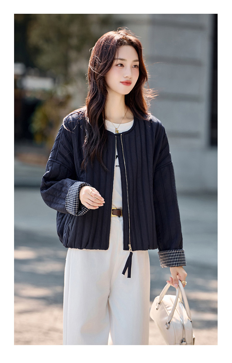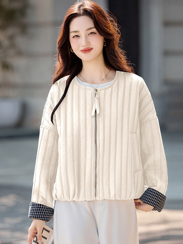 Mô tả :Áo khoác nữ kẻ sọc chất liệu cotton mềm mại, thoáng khí. Thiết kế cổ tròn cùng phom dáng rộng tạo cảm giác thoải mái, dễ phối đồ. Họa tiết kẻ sọc mang hơi hướng nghệ thuật, giúp tổng thể thêm phần cá tính và hiện đại. Áo phù hợp mặc hằng ngày, đi làm hay dạo phố, đáp ứng tính thời trang và đa năng.