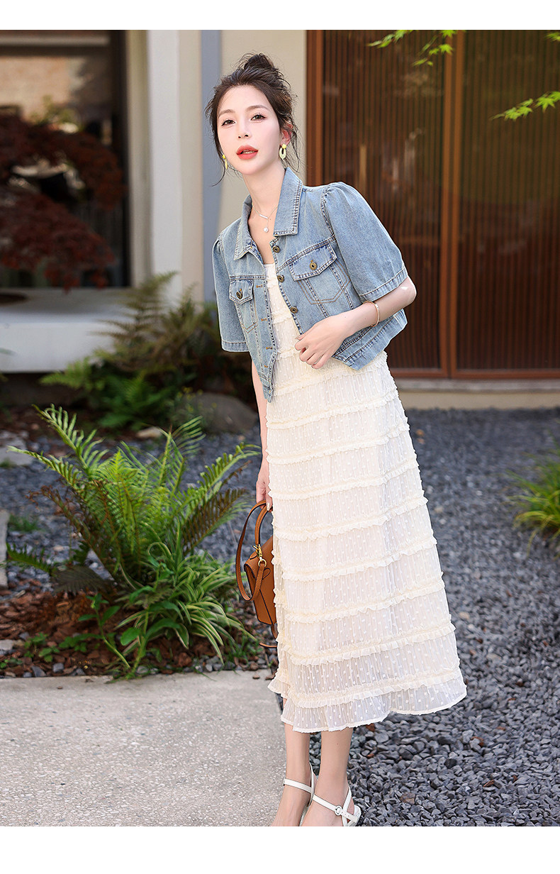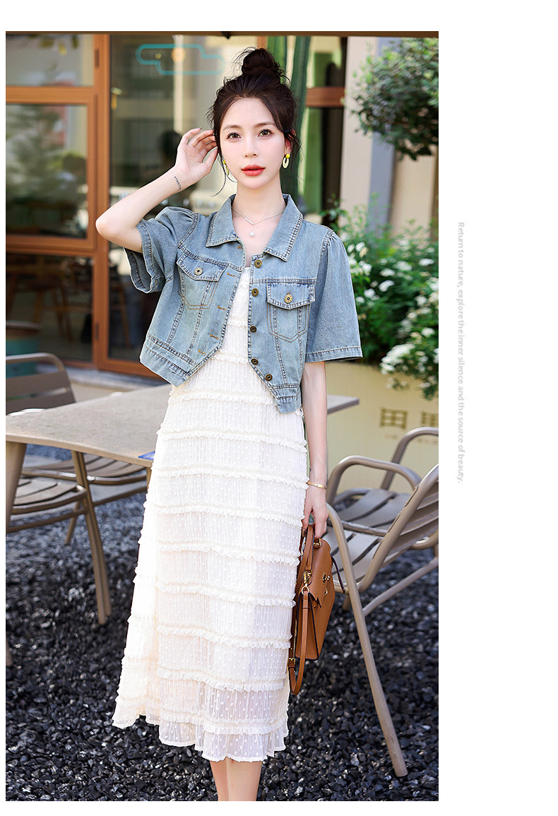 Mô tả :Bộ váy áo màu trắng mang tinh thần thanh lịch lấy cảm hứng từ phong cách kinh điển của Chanel. Thiết kế váy denim tay ngắn dáng xòe tôn lên vẻ nữ tính, trẻ trung nhưng vẫn sang trọng. Chất liệu denim mềm nhẹ kết hợp phom công chúa tạo độ bồng bềnh duyên dáng khi di chuyển. Các chi tiết tinh tế như viền nổi và hàng cúc thanh mảnh giúp tổng thể thêm phần cuốn hút. Đây là lựa chọn hoàn hảo vừa năng động vừa ngọt ngào.