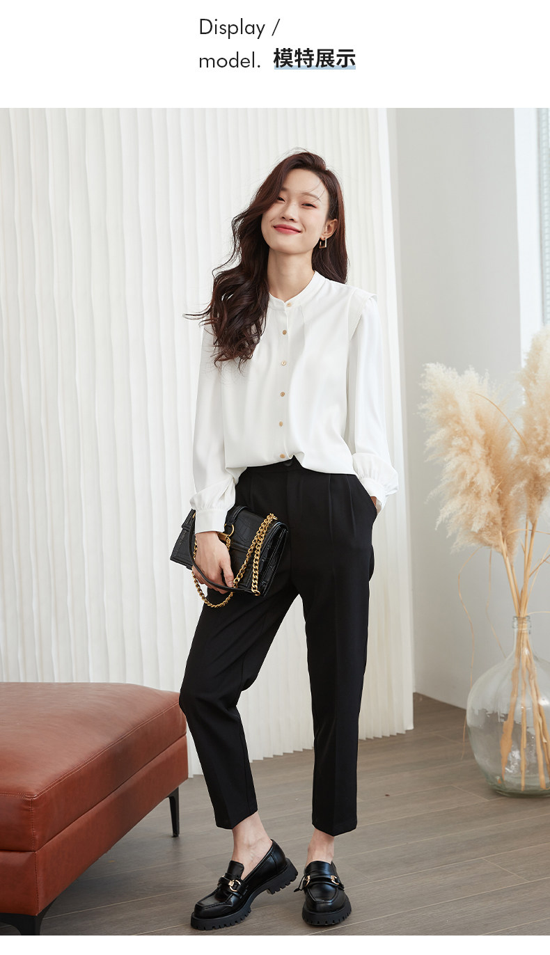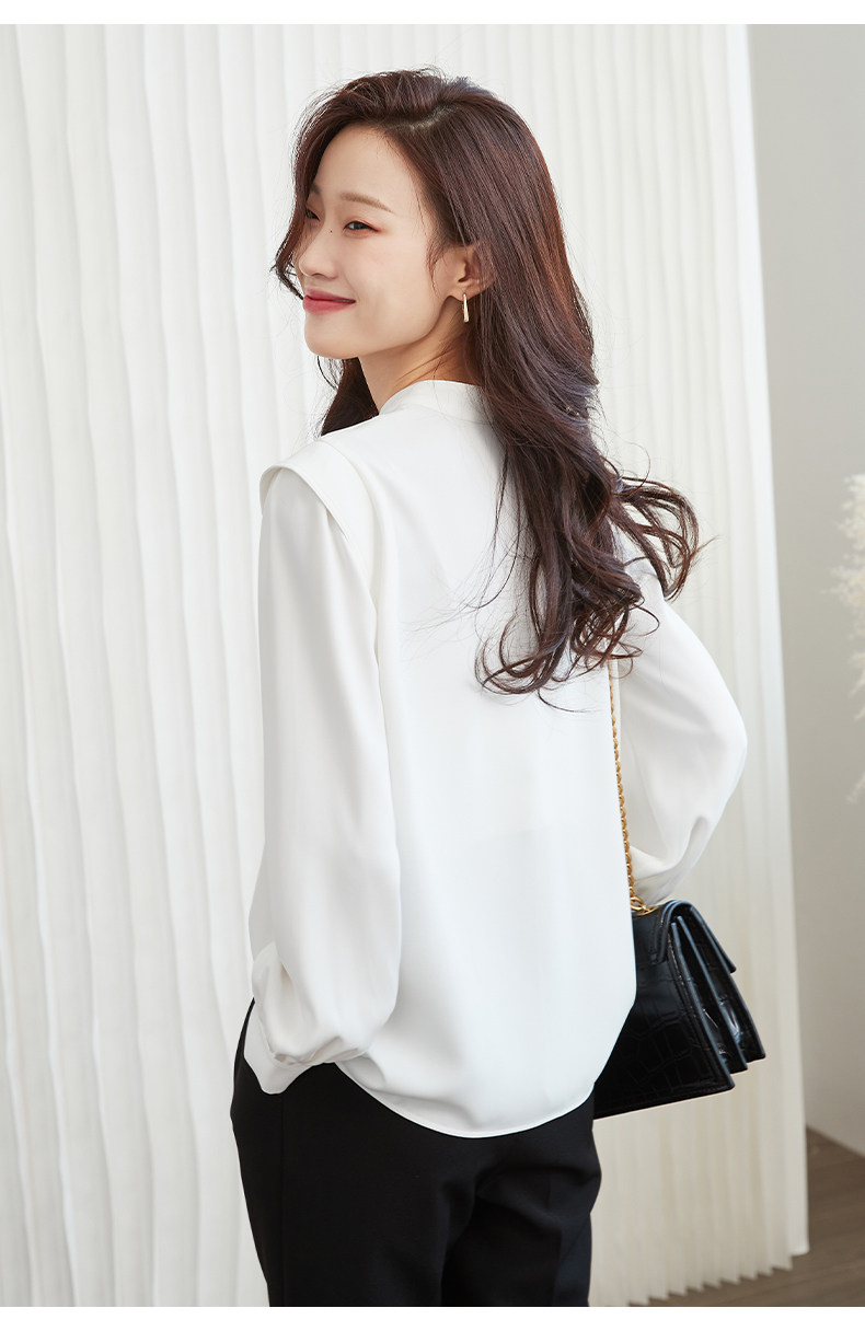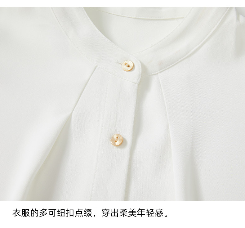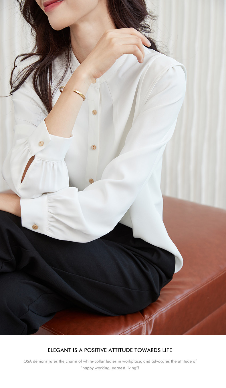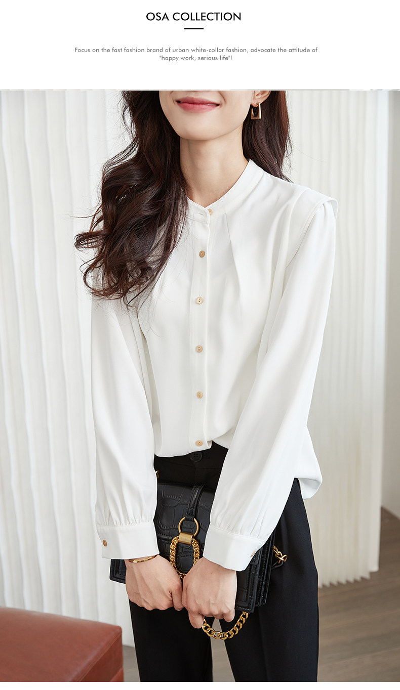 Mô tả :Áo sơ mi chiffon cổ đứng kiểu Pháp mang vẻ đẹp thanh lịch và tinh tế. Thiết kế dáng rộng giúp tạo cảm giác thoải mái, đồng thời tôn lên nét nhẹ nhàng, nữ tính. Phần tay dài phồng là điểm nhấn độc đáo, mang hơi hướng cổ điển nhưng vẫn hiện đại. Chất liệu chiffon mềm mại, bay nhẹ theo từng chuyển động, tạo sự duyên dáng khi mặc. Tông màu trắng trang nhã giúp dễ dàng phối cùng nhiều trang phục khác nhau, từ công sở đến dạo phố.