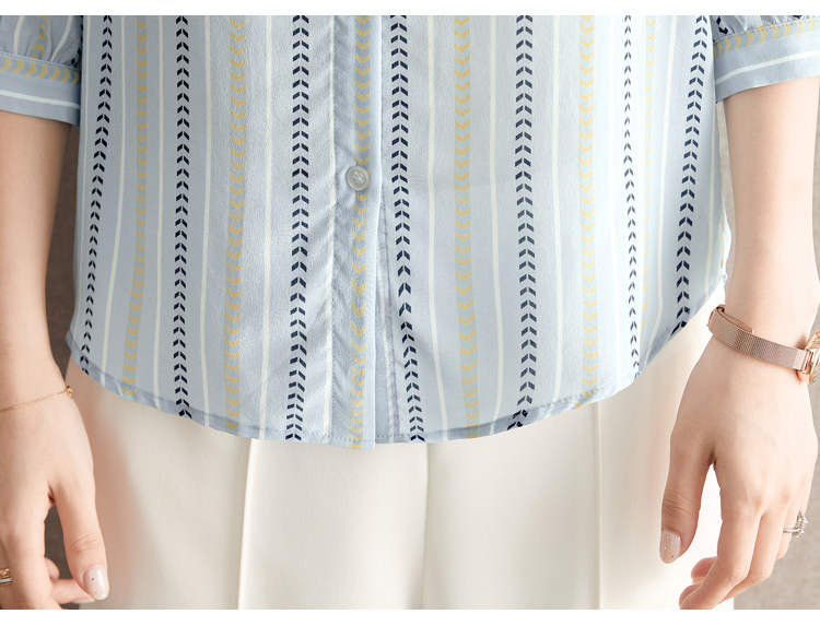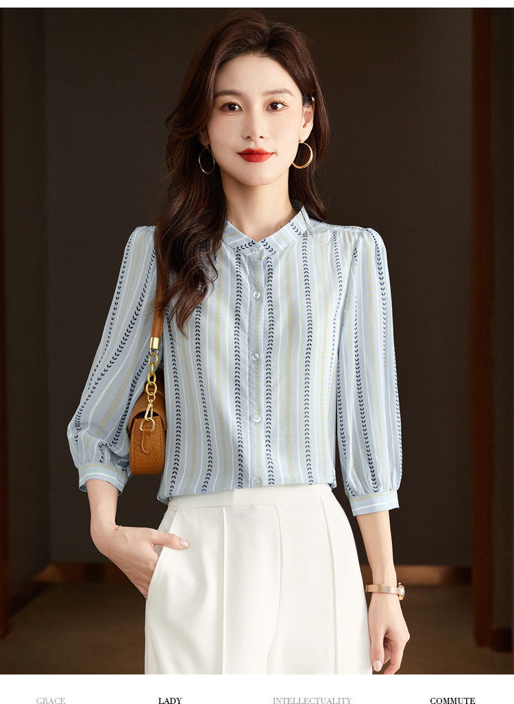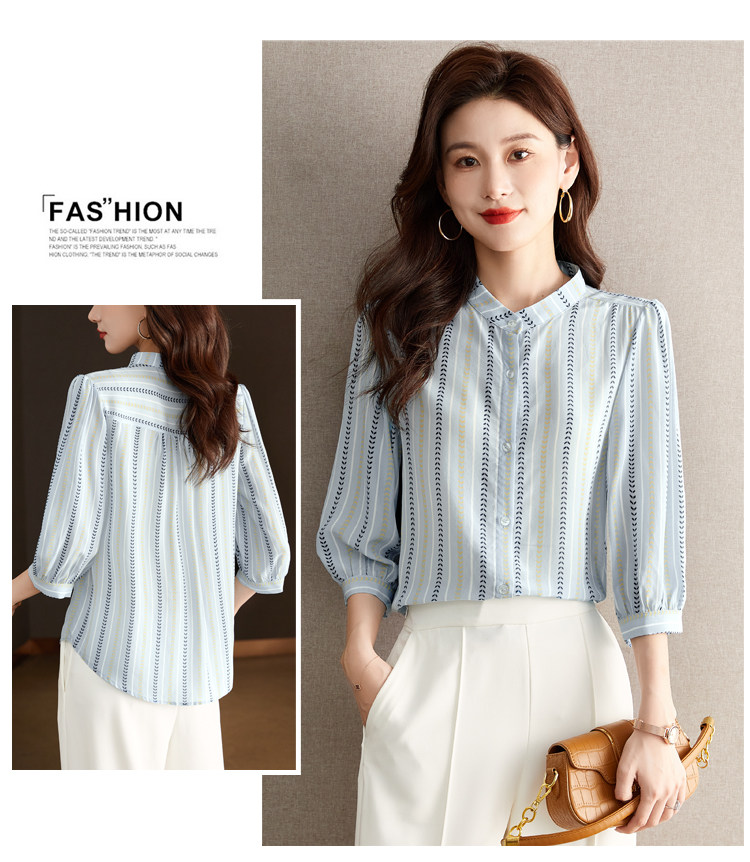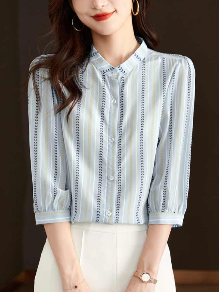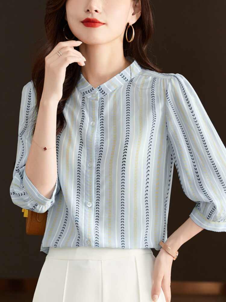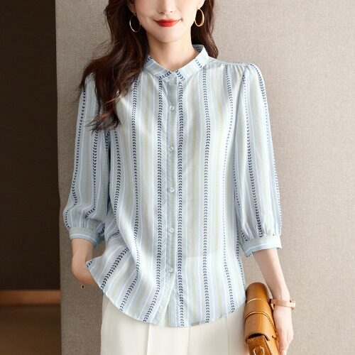 Mô tả :Áo sơ mi voan nữ tay lửng với thiết kế dáng rộng mang lại cảm giác thoải mái và bay bổng. Cổ đứng thanh lịch kết hợp họa tiết kẻ sọc hiện đại giúp tôn lên vẻ ngoài tinh tế. Tay áo dài đến khuỷu tay tạo điểm nhấn nhẹ nhàng, phù hợp cho cả đi làm và dạo phố. Chất liệu voan mềm mại, thoáng mát, dễ mặc suốt ngày dài. Đây là lựa chọn lý tưởng cho phong cách thời trang nữ tính và trang nhã.