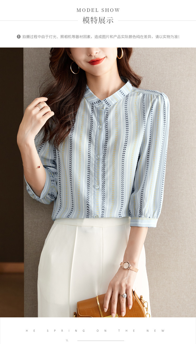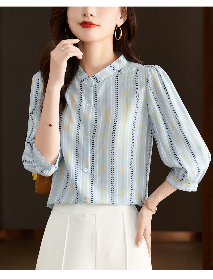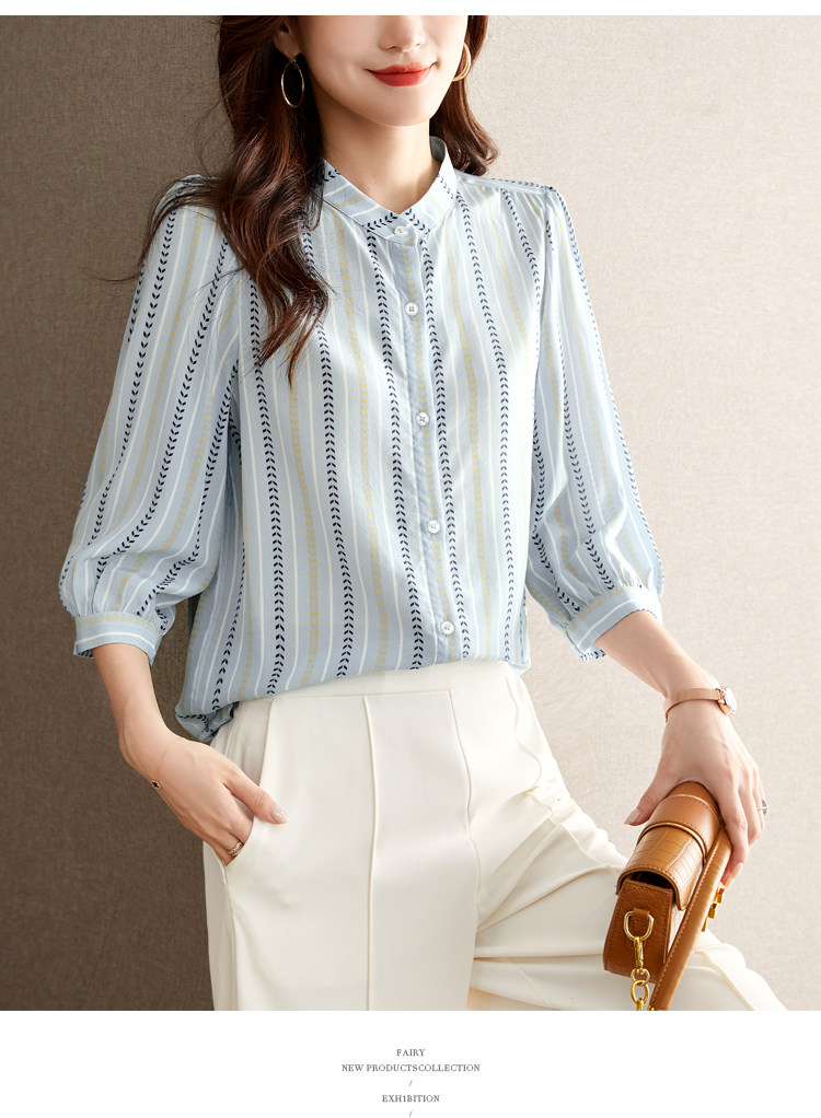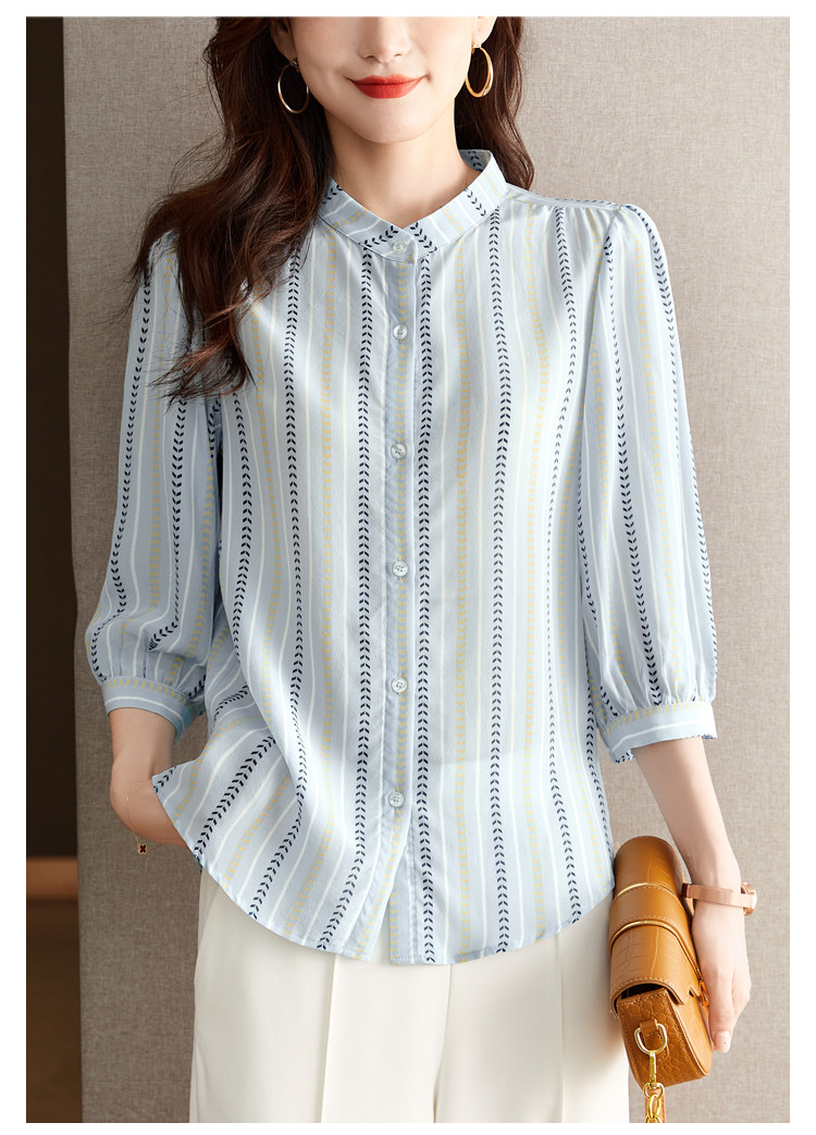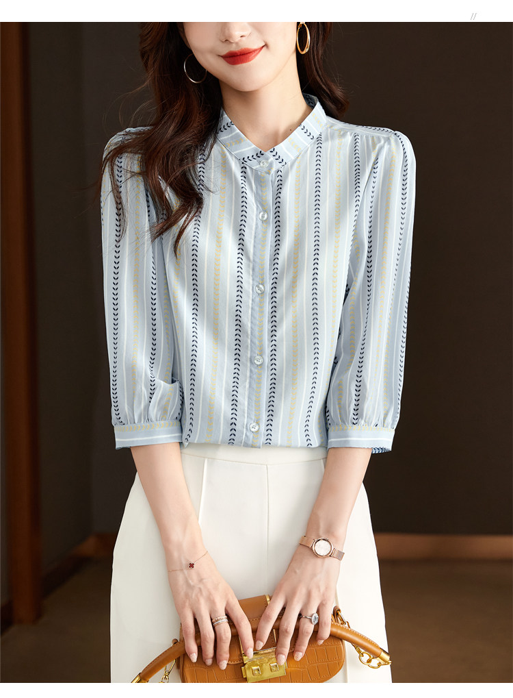 Mô tả :Áo sơ mi voan nữ tay lửng với thiết kế dáng rộng mang lại cảm giác thoải mái và bay bổng. Cổ đứng thanh lịch kết hợp họa tiết kẻ sọc hiện đại giúp tôn lên vẻ ngoài tinh tế. Tay áo dài đến khuỷu tay tạo điểm nhấn nhẹ nhàng, phù hợp cho cả đi làm và dạo phố. Chất liệu voan mềm mại, thoáng mát, dễ mặc suốt ngày dài. Đây là lựa chọn lý tưởng cho phong cách thời trang nữ tính và trang nhã.