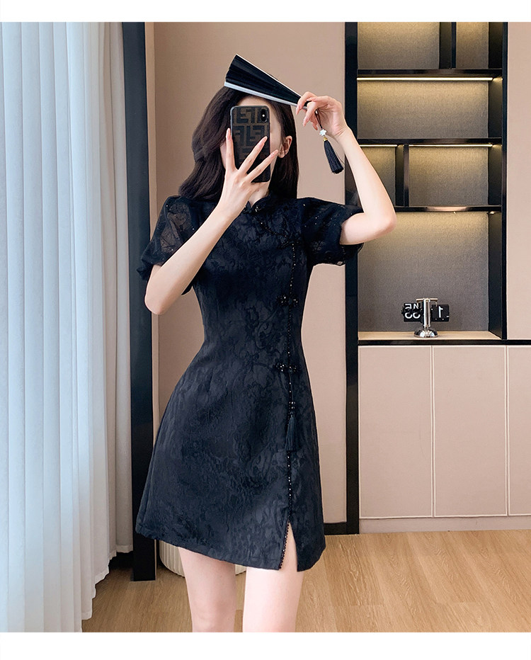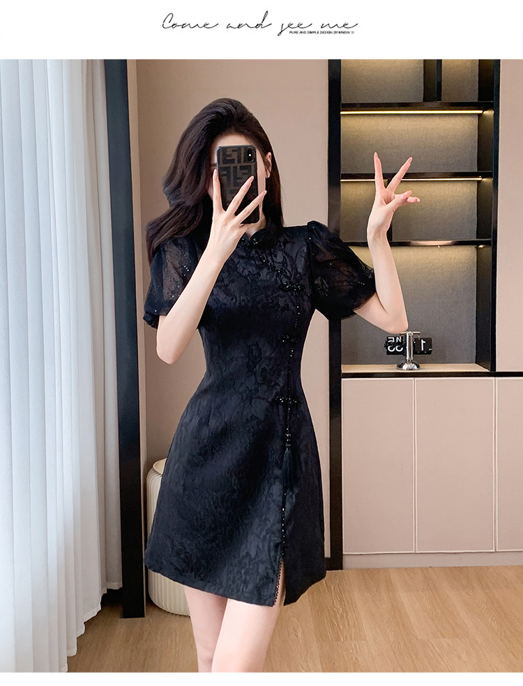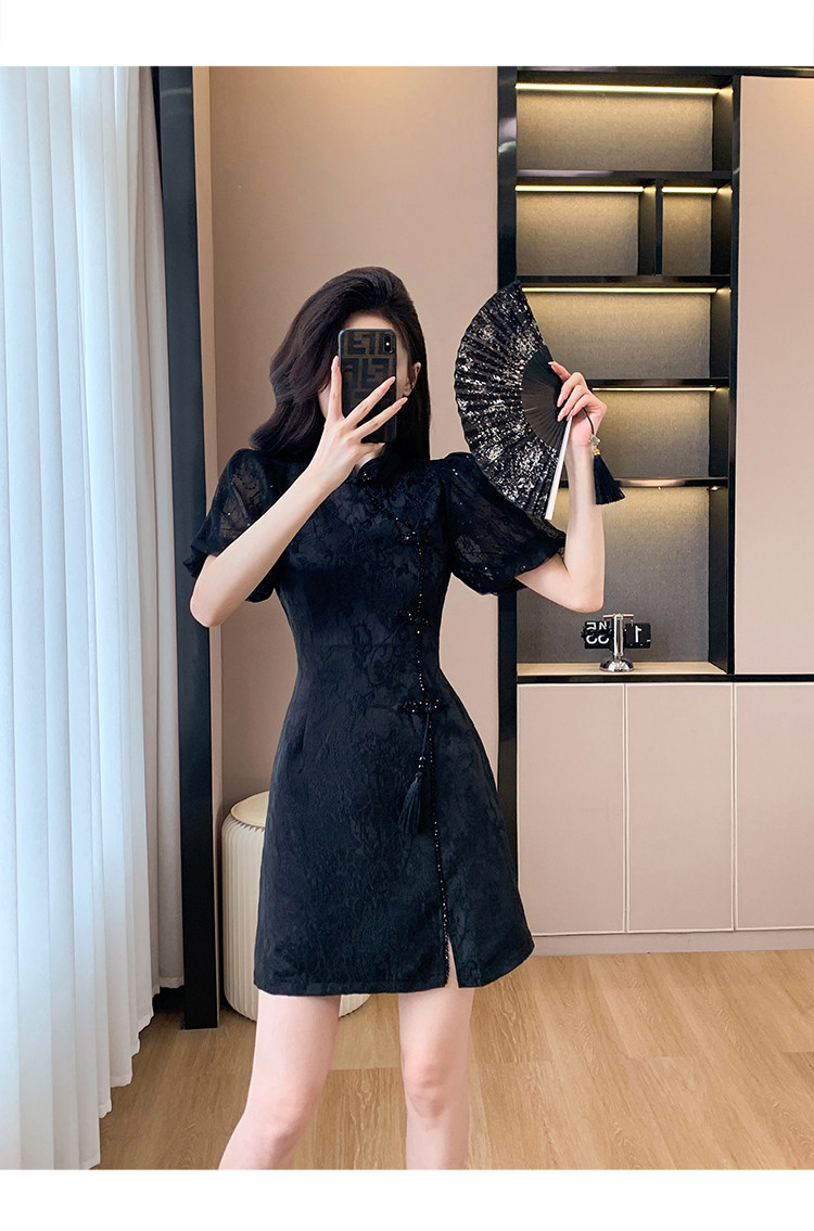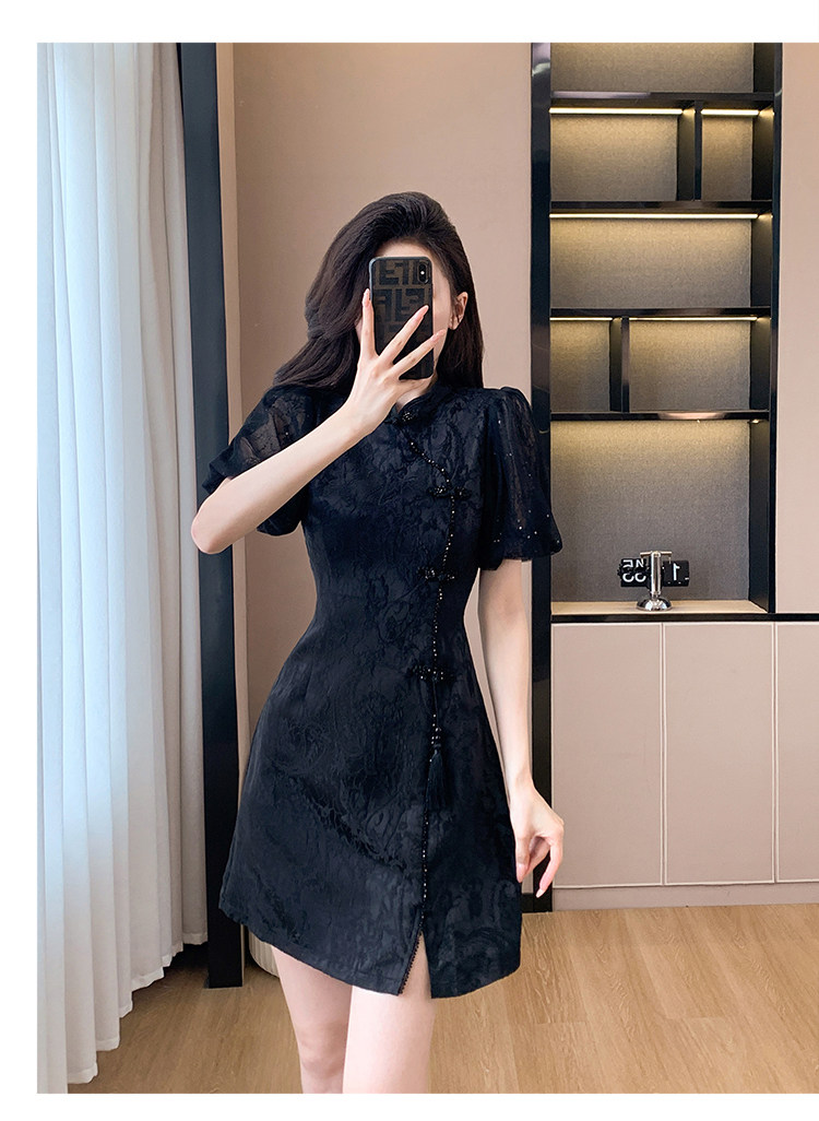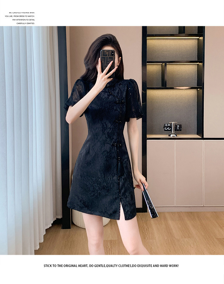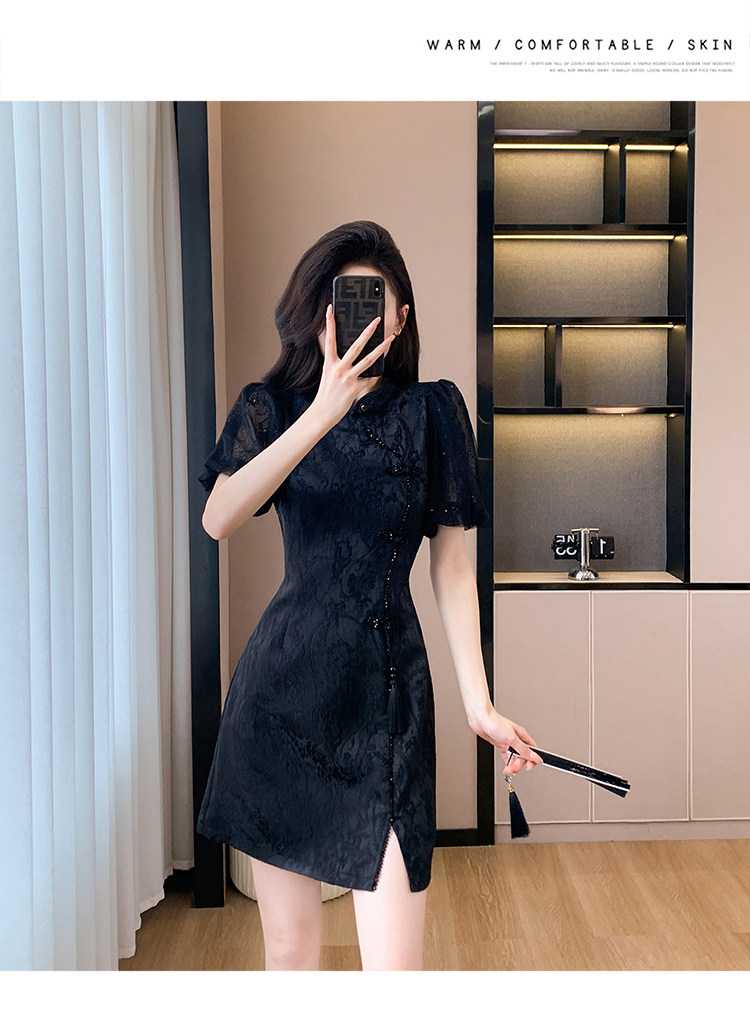 Mô tả :Đầm sườn xám kiểu Trung Quốc được thiết kế dành cho nữ với dáng nhỏ nhắn, ôm sát tôn lên đường cong cơ thể. Chất liệu mỏng nhẹ, thoáng mát giúp người mặc luôn dễ chịu. Tông màu đen thanh lịch mang lại vẻ đẹp sang trọng, bí ẩn và tinh tế. Các chi tiết cổ cao, xẻ tà nhẹ cùng đường may tinh xảo tạo điểm nhấn quyến rũ nhưng vẫn kín đáo. Đây là lựa chọn hoàn hảo cho những dịp dạo phố, dự tiệc hoặc chụp ảnh nghệ thuật.