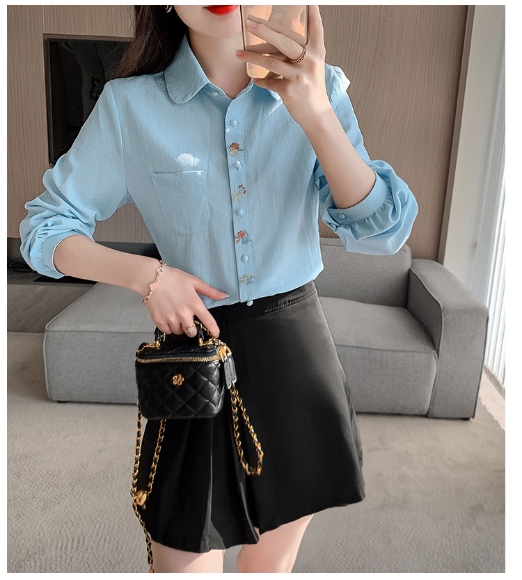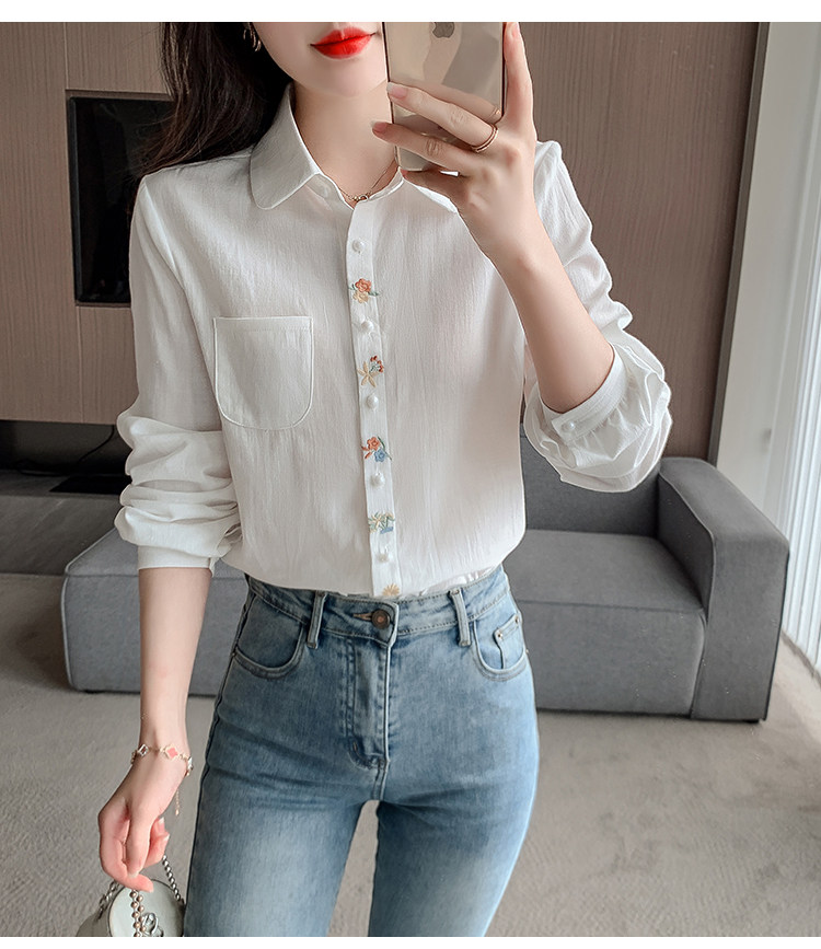 Mô tả :Áo sơ mi nữ thêu họa tiết tinh tế, mang phong cách thanh lịch và hiện đại. Thiết kế cổ polo kết hợp tay dài tạo vẻ chỉn chu, phù hợp nhiều hoàn cảnh. Chất liệu 100% cotton nguyên chất mềm mại, thoáng mát và thân thiện với da. Sản phẩm dễ dàng phối cùng nhiều trang phục khác nhau. Một lựa chọn lý tưởng cho tủ đồ tối giản nhưng vẫn nổi bật.