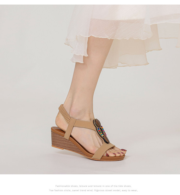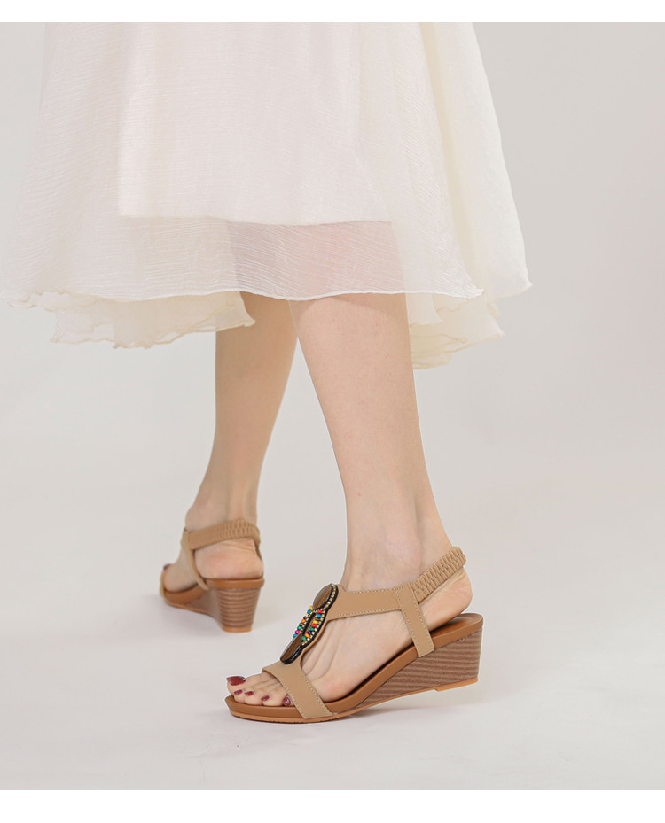 Mô tả :Giày sandal đế xuồng kiểu La Mã mang hơi thở Bohemian phóng khoáng, nổi bật với các chi tiết đính hạt thủ công đầy màu sắc. Thiết kế hở mũi giúp thoáng mát, phù hợp cho phong cách năng động. Phần quai đan dây đặc trưng tôn dáng bàn chân, tạo cảm giác vừa vặn và cá tính. Đế xuồng cao nhưng chắc chắn, hỗ trợ di chuyển thoải mái suốt ngày dài. Phù hợp với nhiều outfit từ váy maxi đến quần short, mang lại vẻ ngoài tự do và cuốn hút.