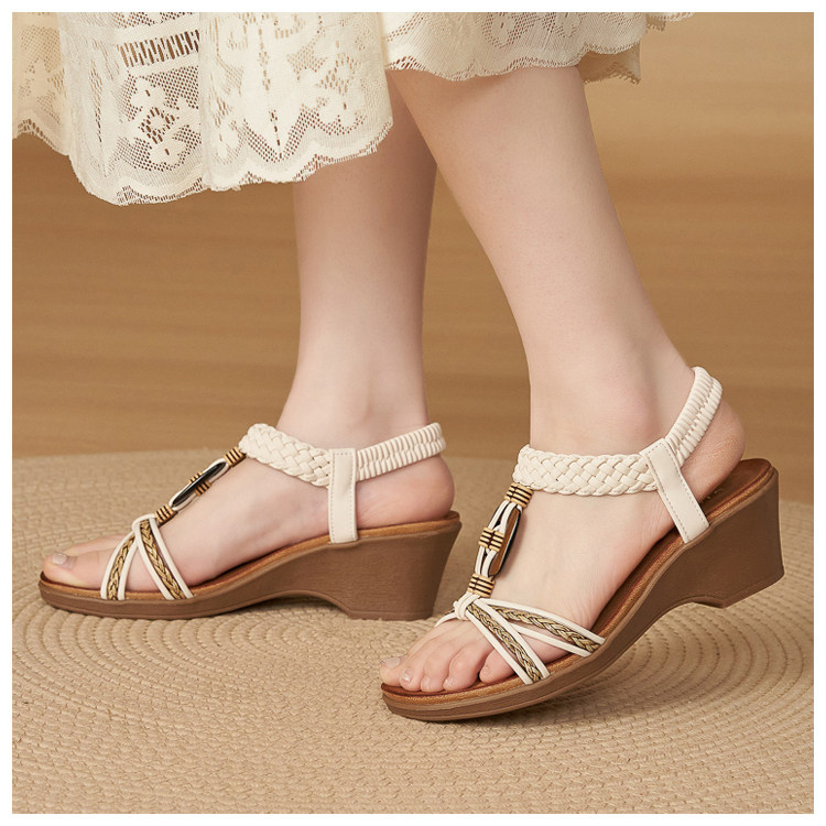 Mô tả :Giày sandal cao gót đế xuồng kiểu La Mã mang phong cách Bohemia phóng khoáng, nổi bật với thiết kế quai chéo kết hợp quai ngón chân độc đáo. Chi tiết khóa gỗ tạo điểm nhấn mộc mạc, đậm chất dân tộc. Phần đế xuồng cao giúp tôn dáng nhưng vẫn đảm bảo sự ổn định khi di chuyển. Thiết kế cỡ lớn phù hợp nhiều dáng chân, mang lại cảm giác thoải mái suốt ngày dài. Lý tưởng cho dạo phố, du lịch hoặc các buổi đi chơi.